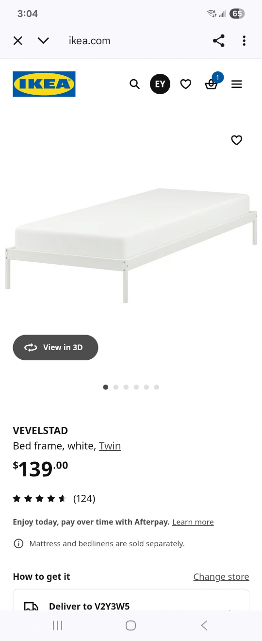 Frame: IKEA Vevelstad white metal (Twin) - sturdy, minimalist design fits any room