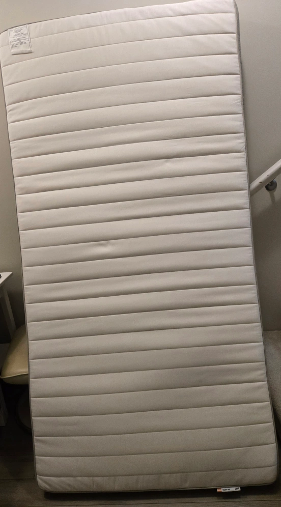 Mattress: IKEA HUSVIKA (Twin) – clean, firm, and supportive