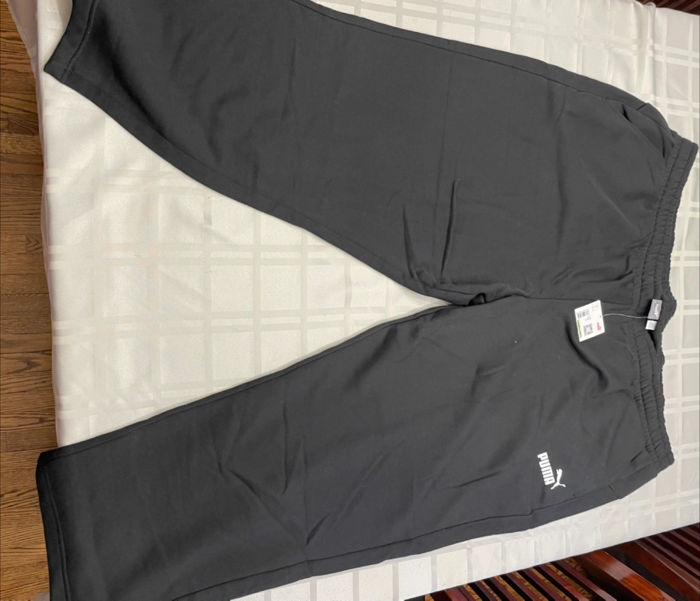 73Brand new Puma sweatpants, never worn and still with the original tags! They're a comfortable XXL size and a classic black colour. Perfect for lounging or working out retails for 75$