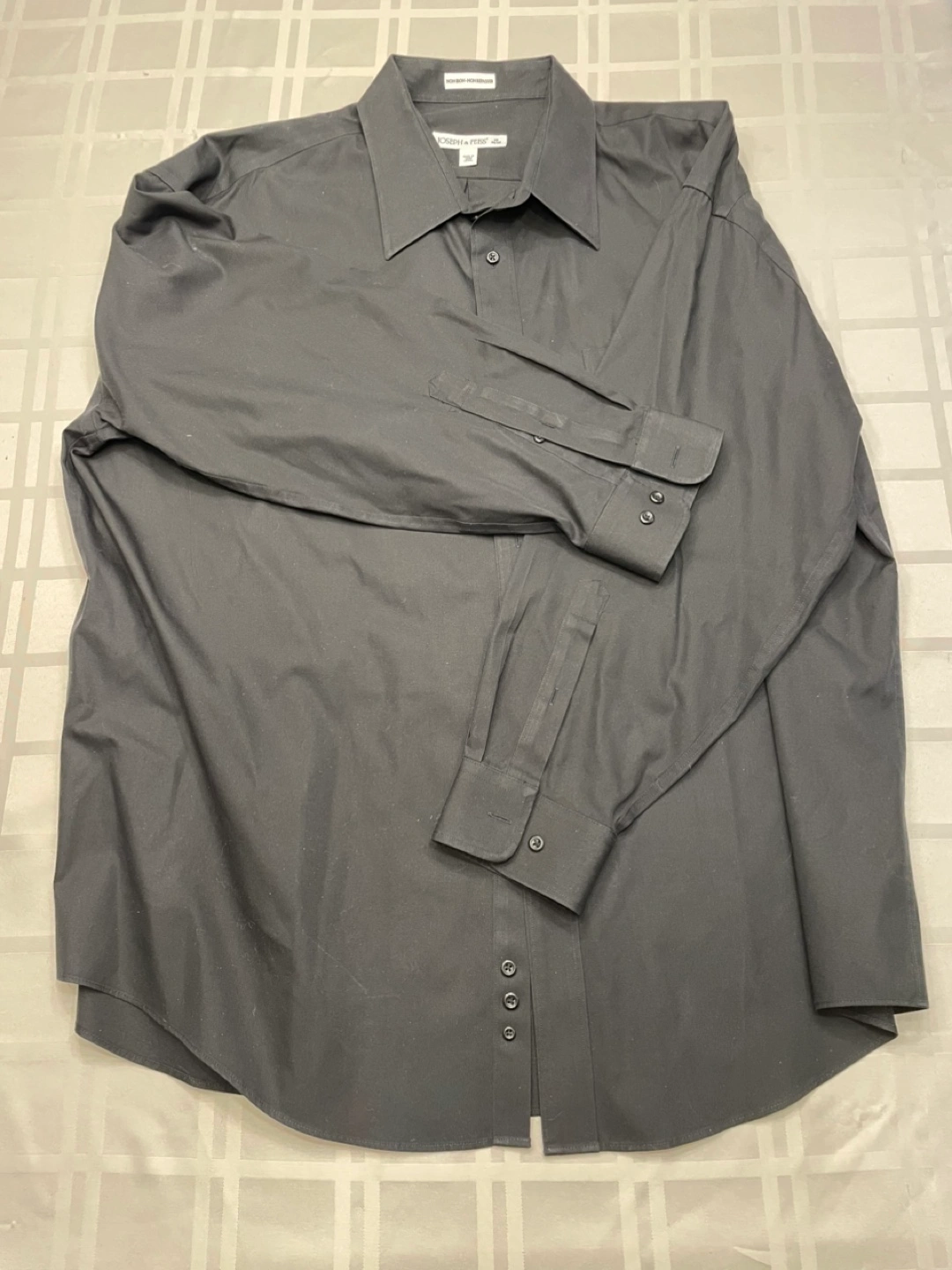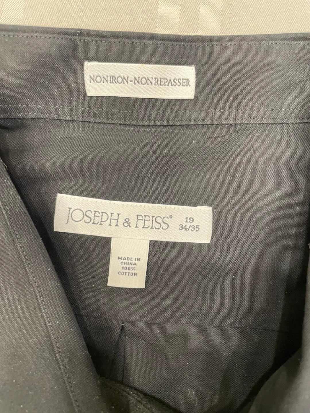 Selling a Joseph & Feiss dress shirt in black. It's a size 19 with a 34/35 length. The shirt is made of 100% cotton and is non-iron, making it super easy to care for!