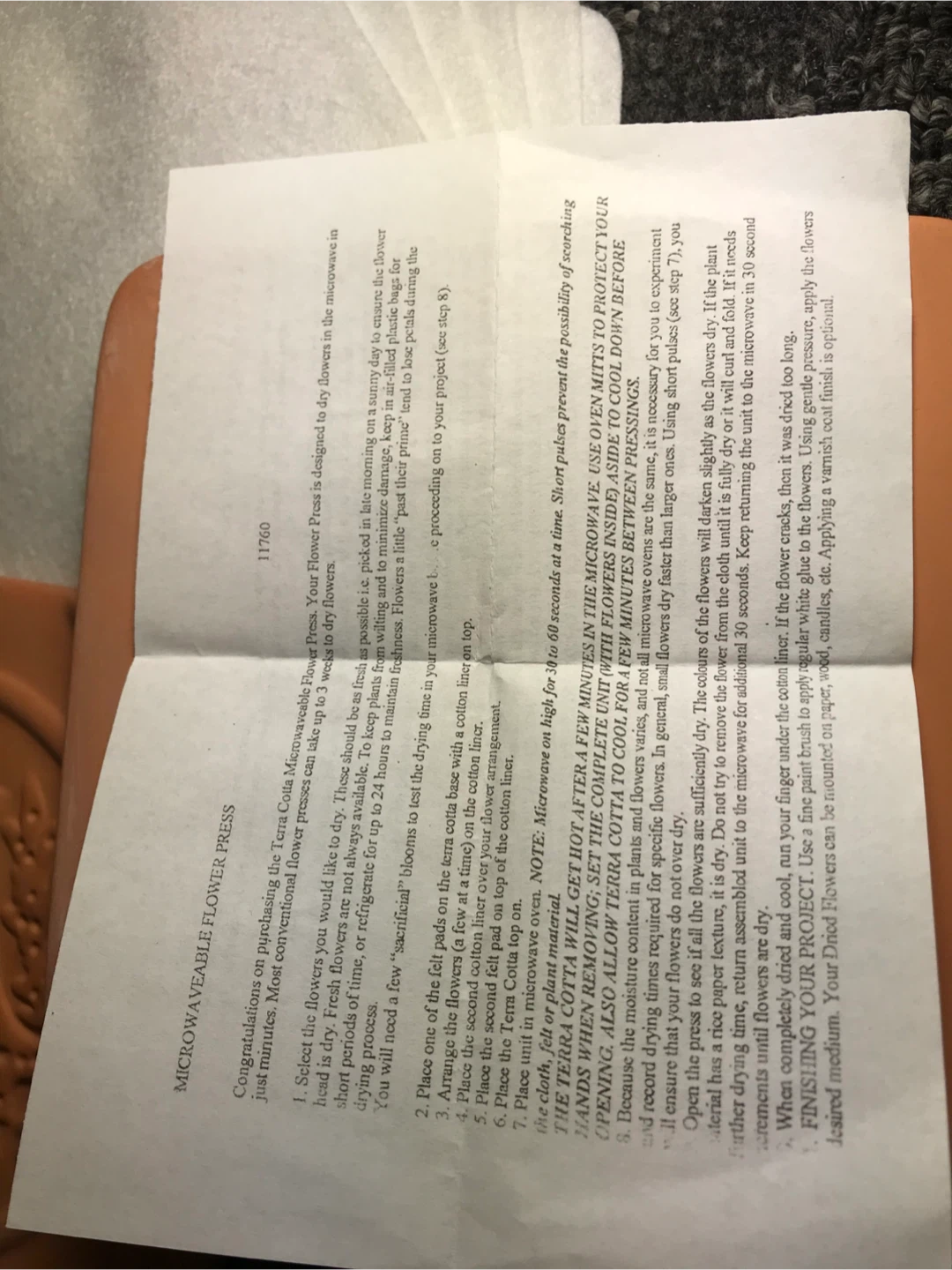 1 / 61 / 6Buy & SellTerracotta microwave oven flower pressTerracotta microwave oven flower press$25Terra-cotta microwave oven flower press 6 1/4“ x 6 1/4“. In great condition like new comes with instruction on how to use.ConditionLike newWHERE TO MEETCheck LocationView MapSELLERverifiedJenErin Mills18610 reviews1 chats·0 favorites·25 viewsSEND CHAT TO SELLERHi Jen! I’m interested in your listing.Hi Jen! I’m interested in your listing.Get the Karrot app to chatSign In to chat