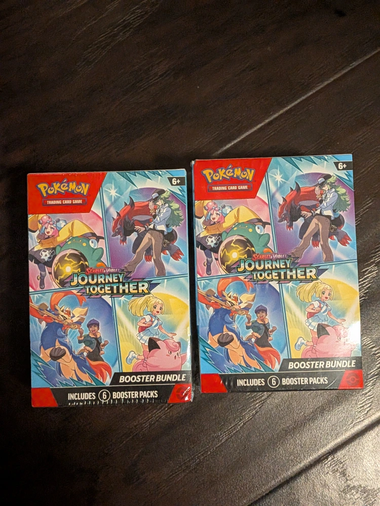 Selling two Pokémon Trading Card Game Scarlet & Violet Journey Together Booster Bundles! Each bundle includes 6 booster packs, perfect for expanding your collection or getting into the game 54$ Each