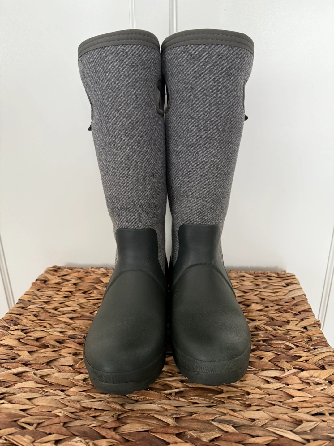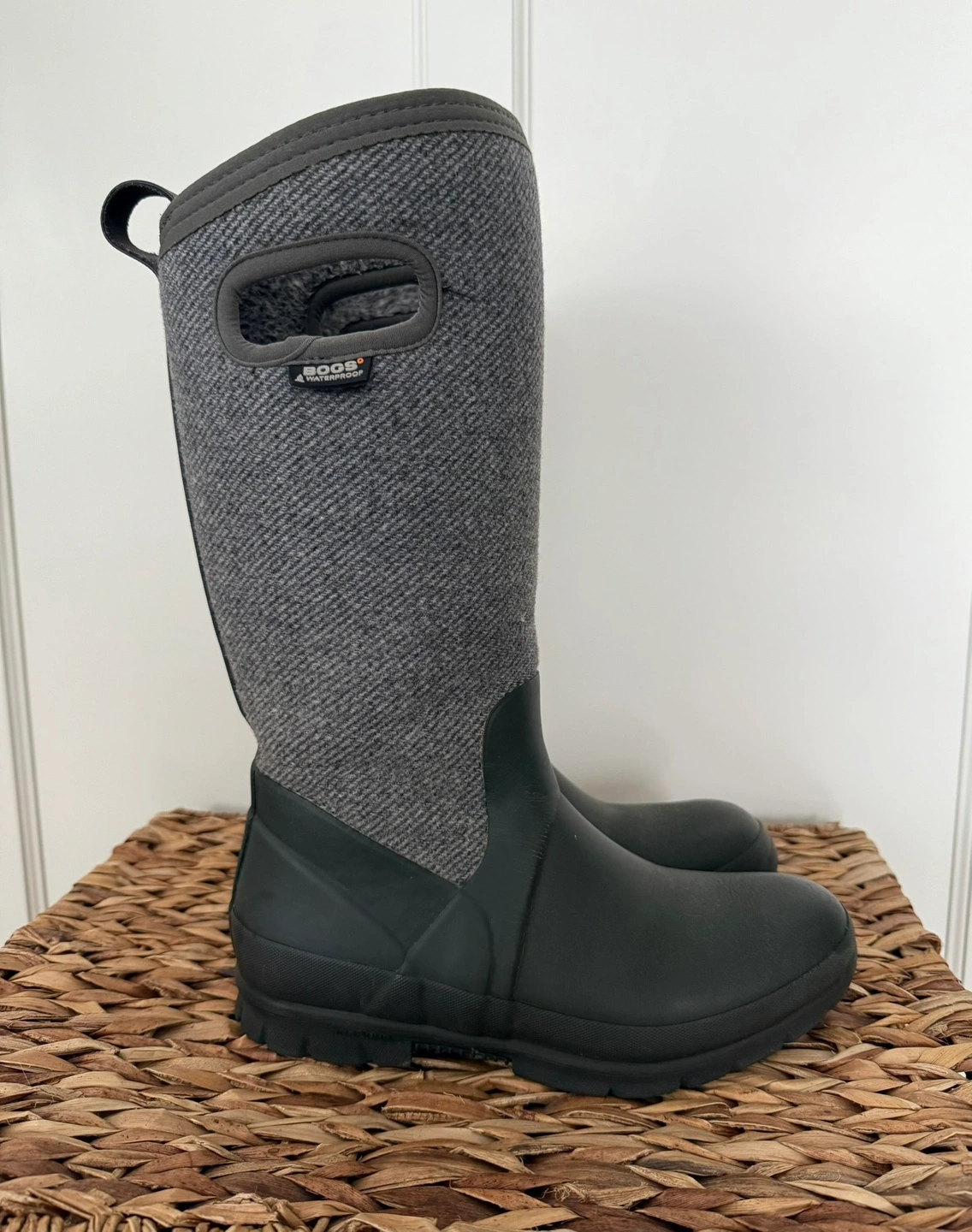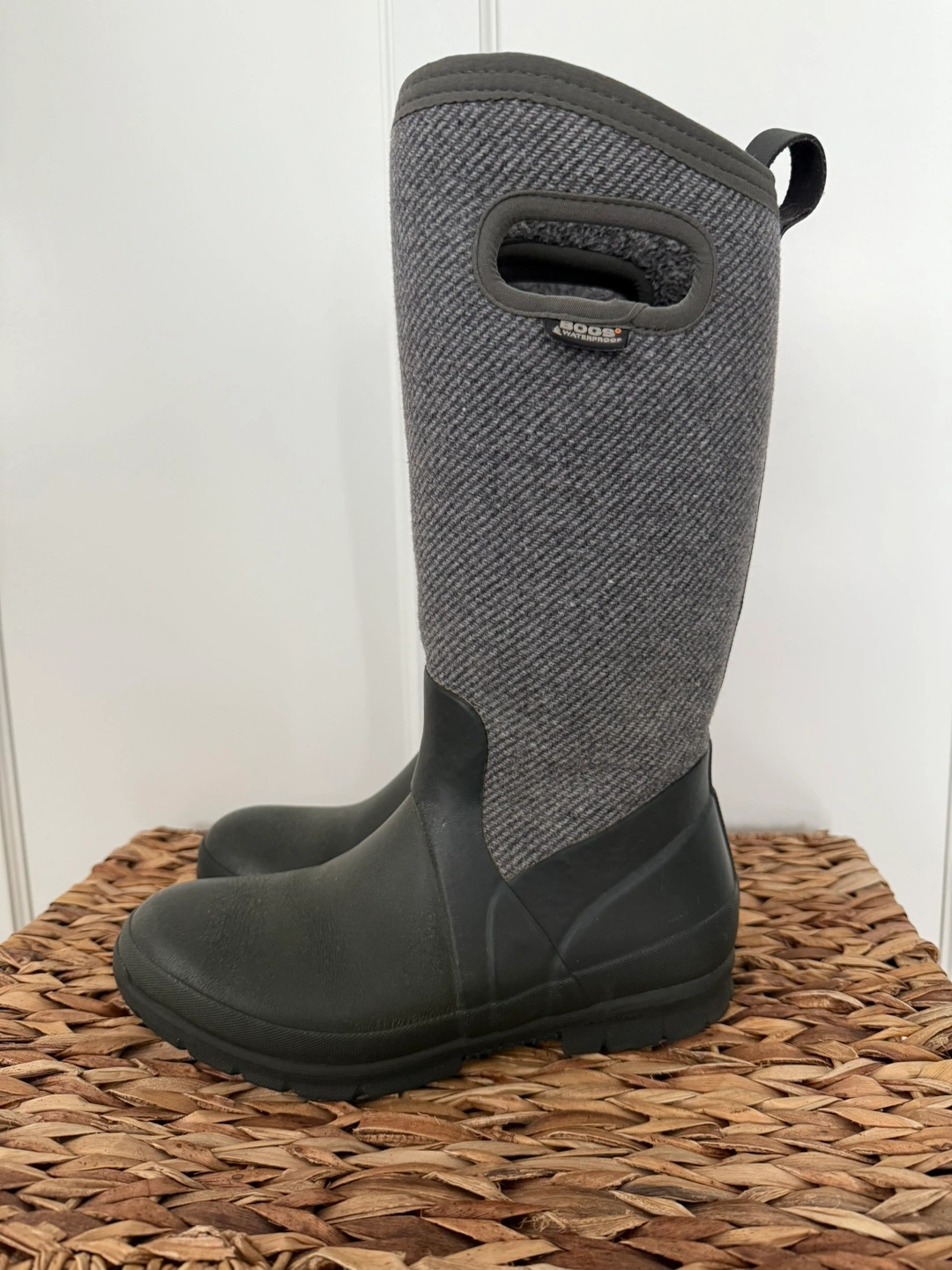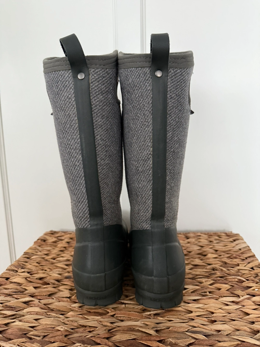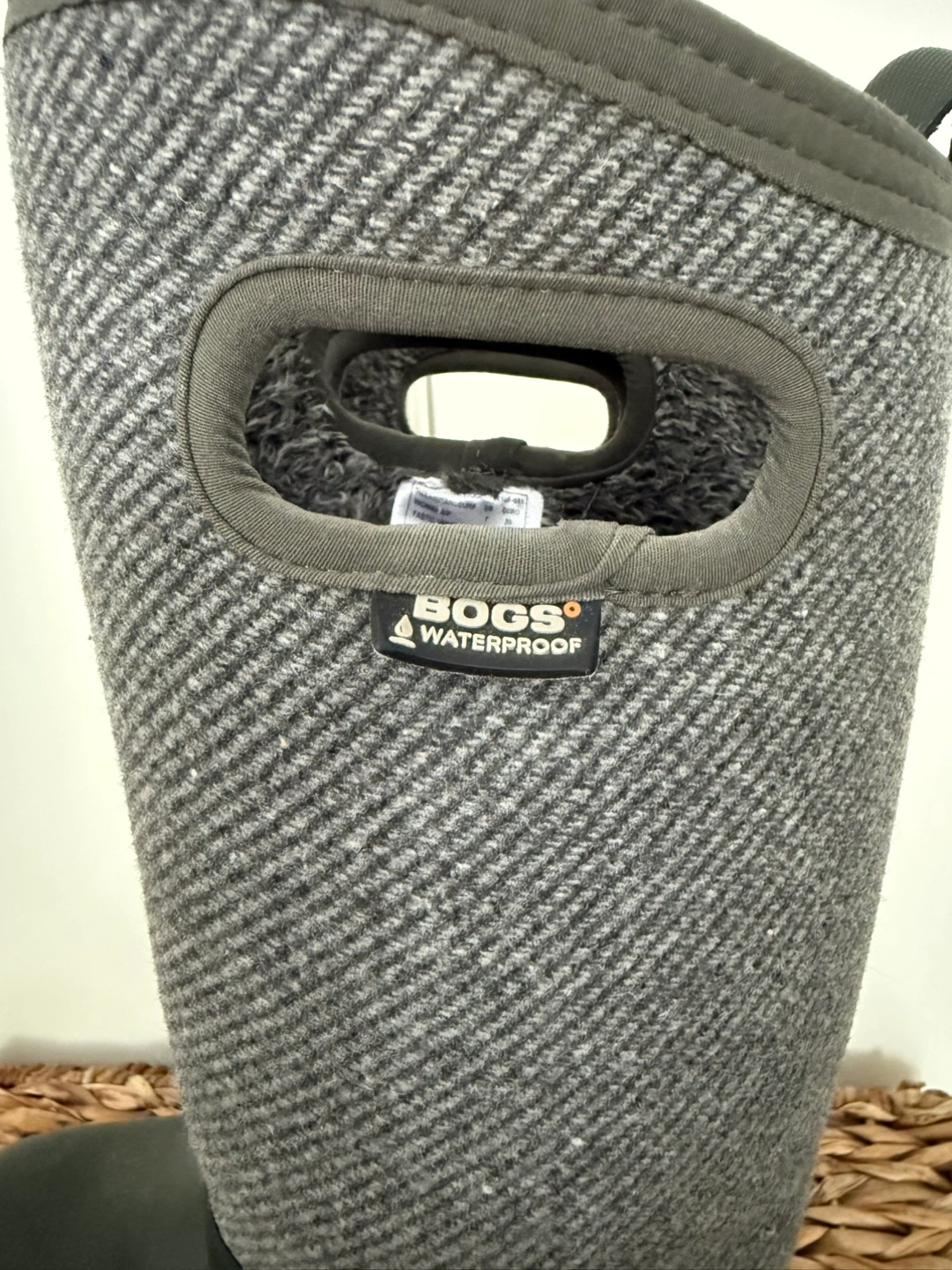 135‼️ c l o s e t c l e a r o u t ‼️ ⚠️ item is available 👉🏻 pick up near Greenbank/Hunt Club 👉🏻 priced to sell quickly 🚫 smoke-free home / no pet hair Bogs waterproof tall boots. Grey herringbone pattern on the upper part and a black rubber foot. Perfect for keeping your feet dry and warm! Some surface cracks but still super warm!! Thank you for your interest! Merci de votre intérêt !