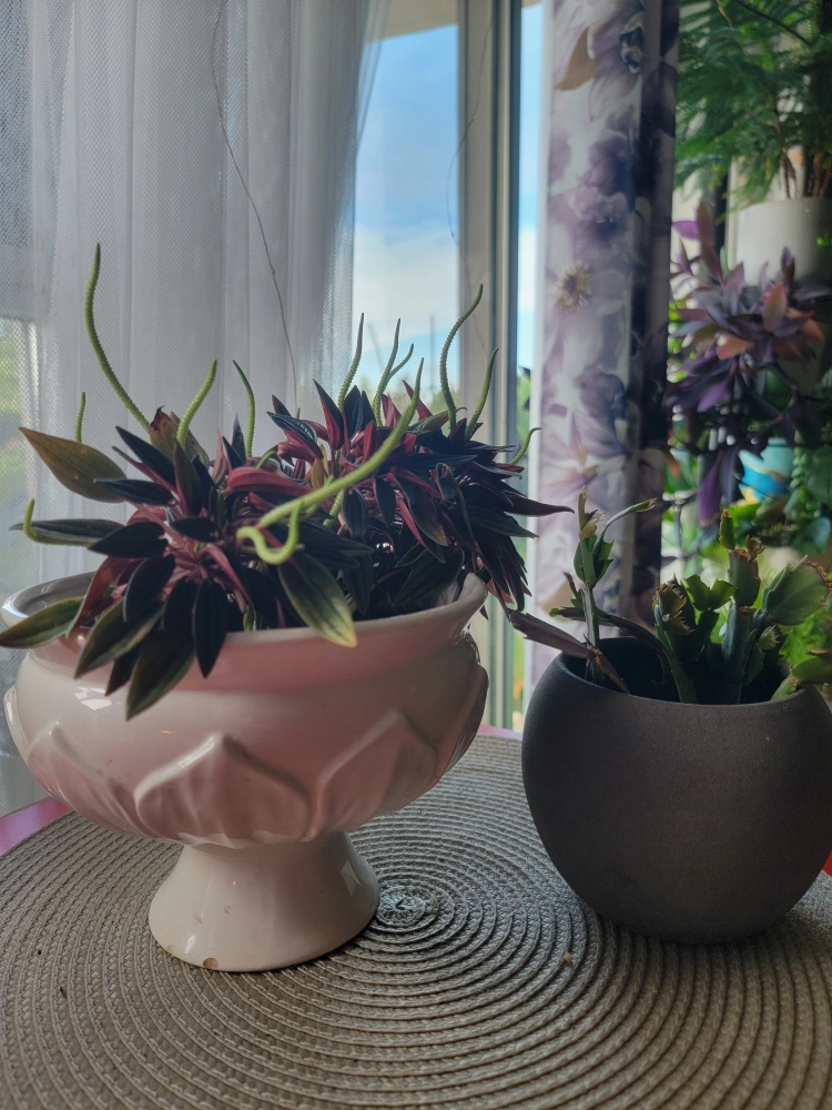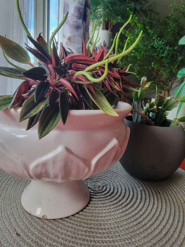 wooden small table +flowers