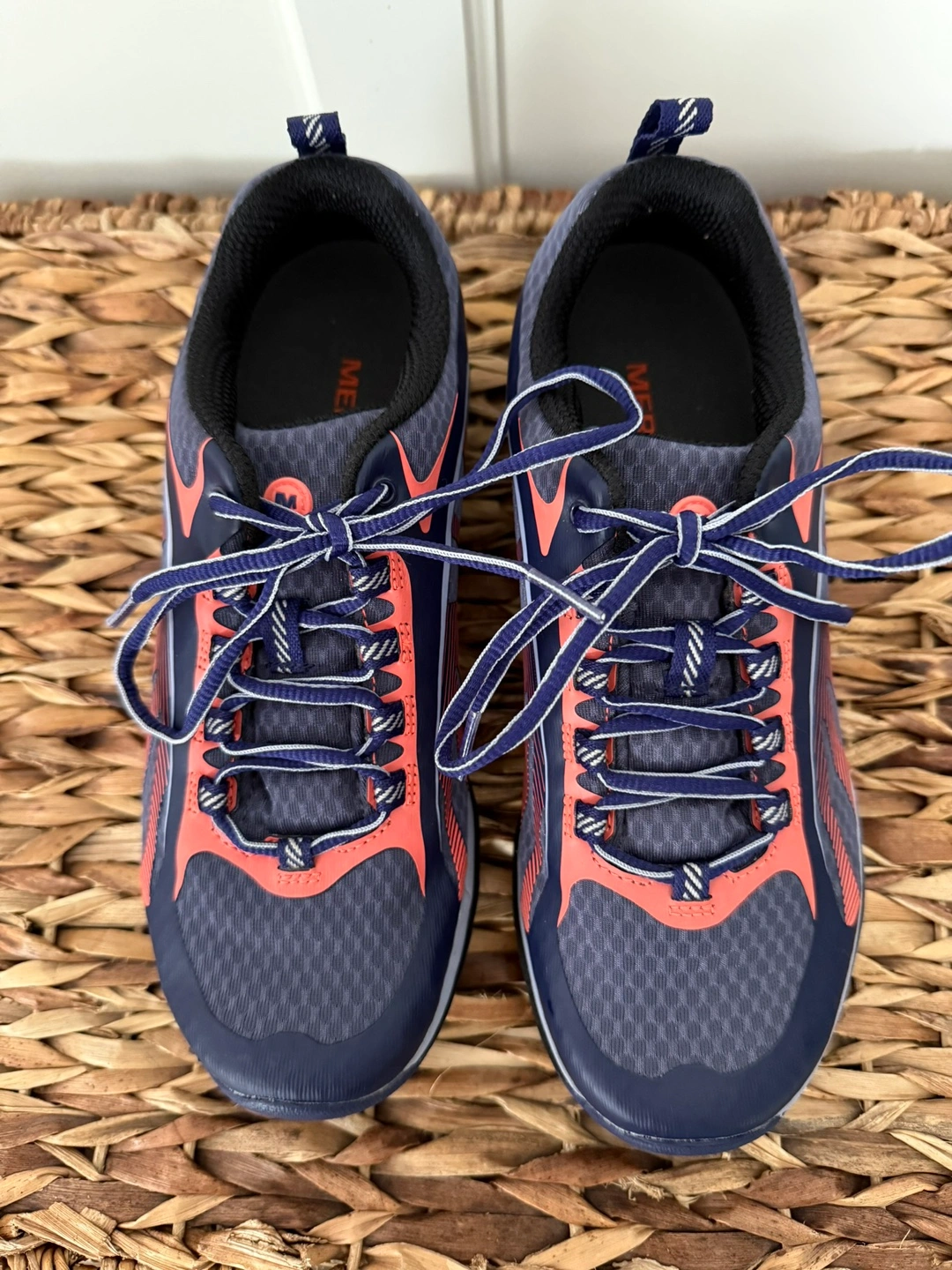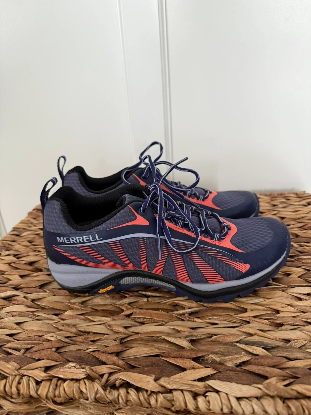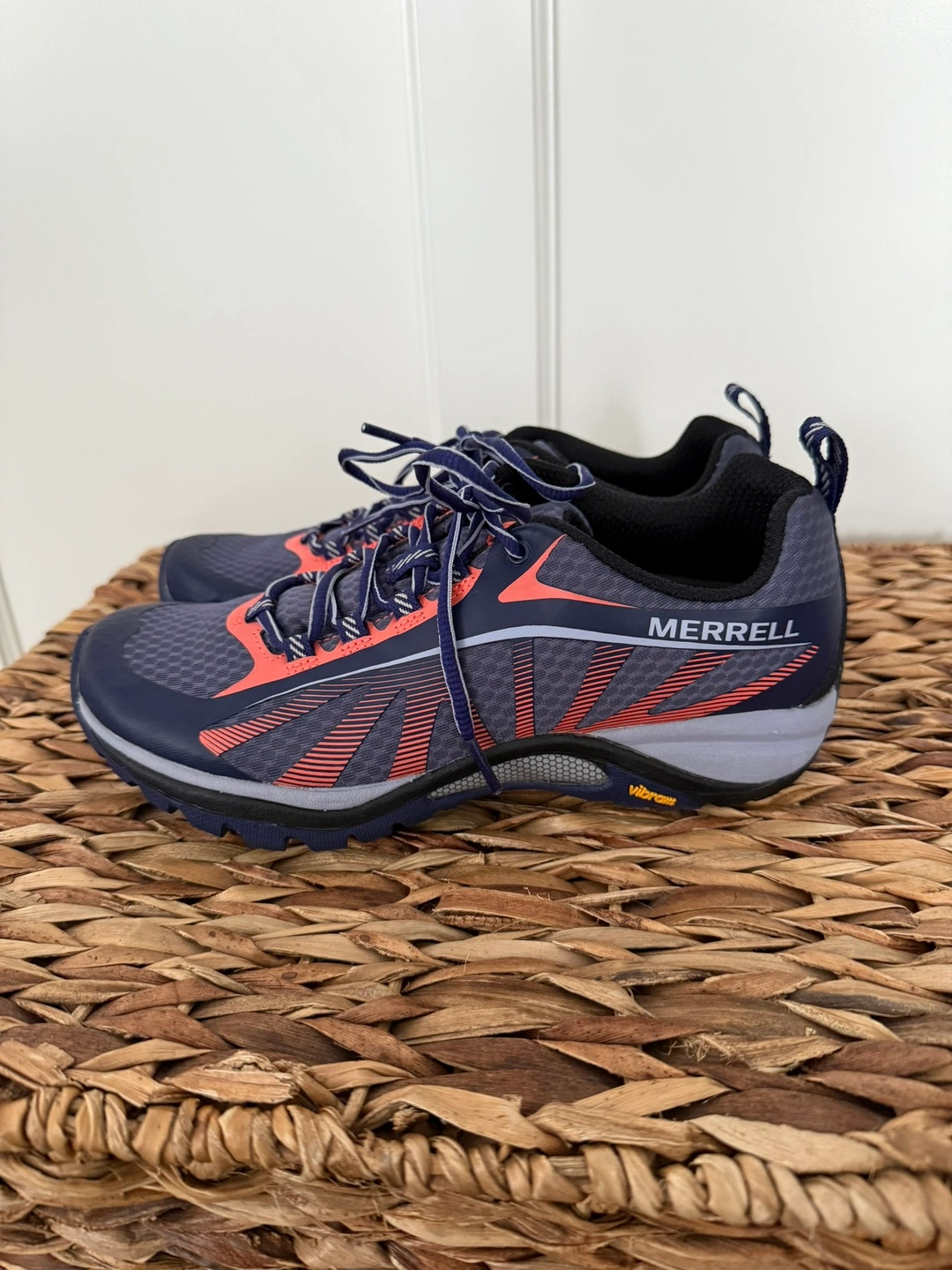 135‼️ c l o s e t c l e a r o u t ‼️ ⚠️ item is available 💸 priced to sell quickly 📍 pick up near Greenbank / Hunt Club 🚫 smoke-free home / no pet hair Merrell Agility Peak Flex Trail Runners LOVE these!! Worn a handful of times. Sadly, just a little too big for me. Size 6.5 / 37 Selling a pair of Merrell Agility Peak Flex trail running shoes. They are a stylish mix of navy/purple and coral colour. These shoes are great for hitting the trails or just everyday wear! Thank you for your interest! Merci de votre intérêt !