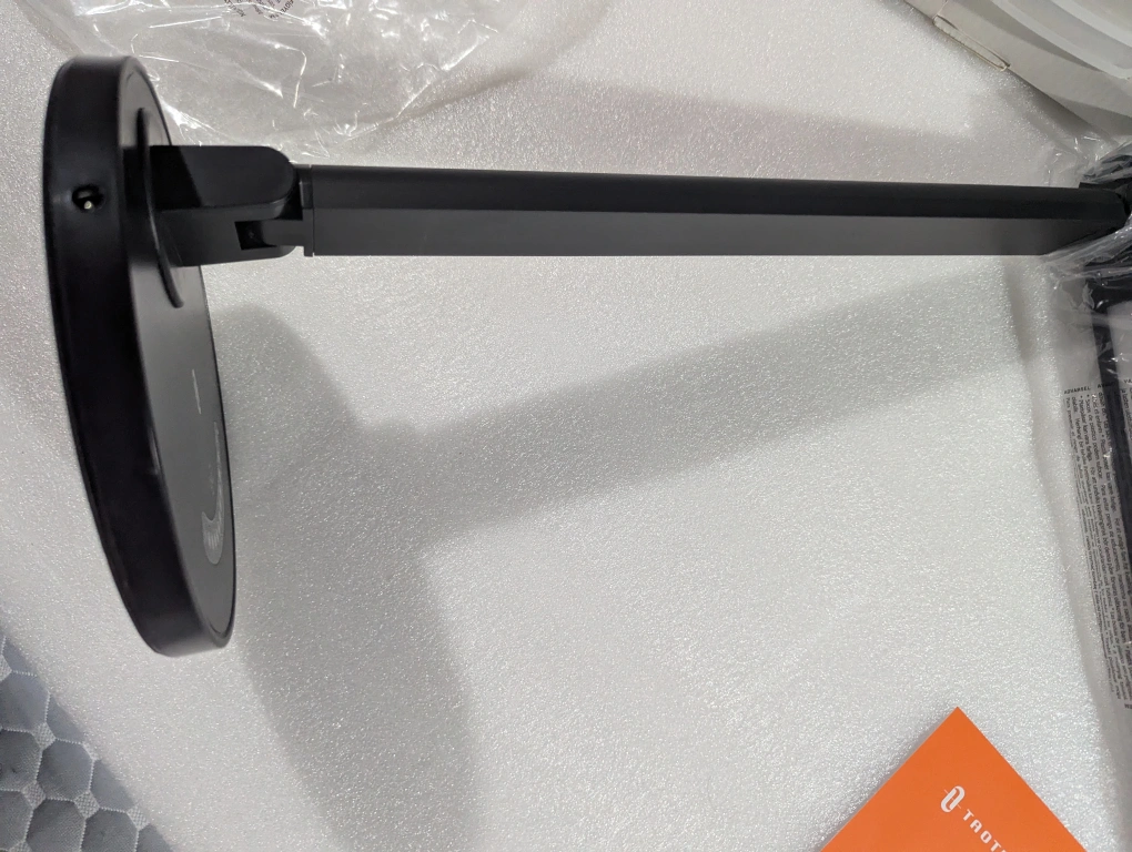I'm selling a brand new TaoTronics Dimmable LED Desk Lamp! It is black and includes the box, charger, and instructions. This lamp is lightweight and portable, perfect for any desk or workspace