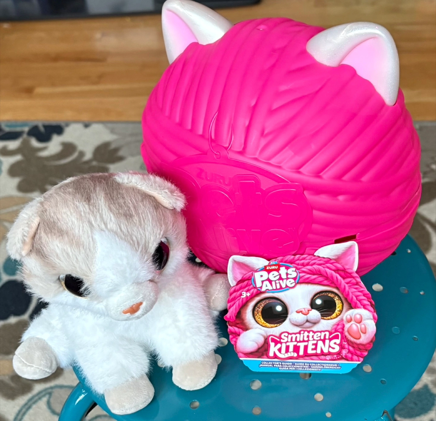 Selling a Zuru Pets Alive Smitten Kittens toy! It's in great condition and ready for a new home. Comes with the cute kitten plush and the yarn ball container. It's a fun surprise toy for kids! It purrs and meows when you pet it . Uses batteries.