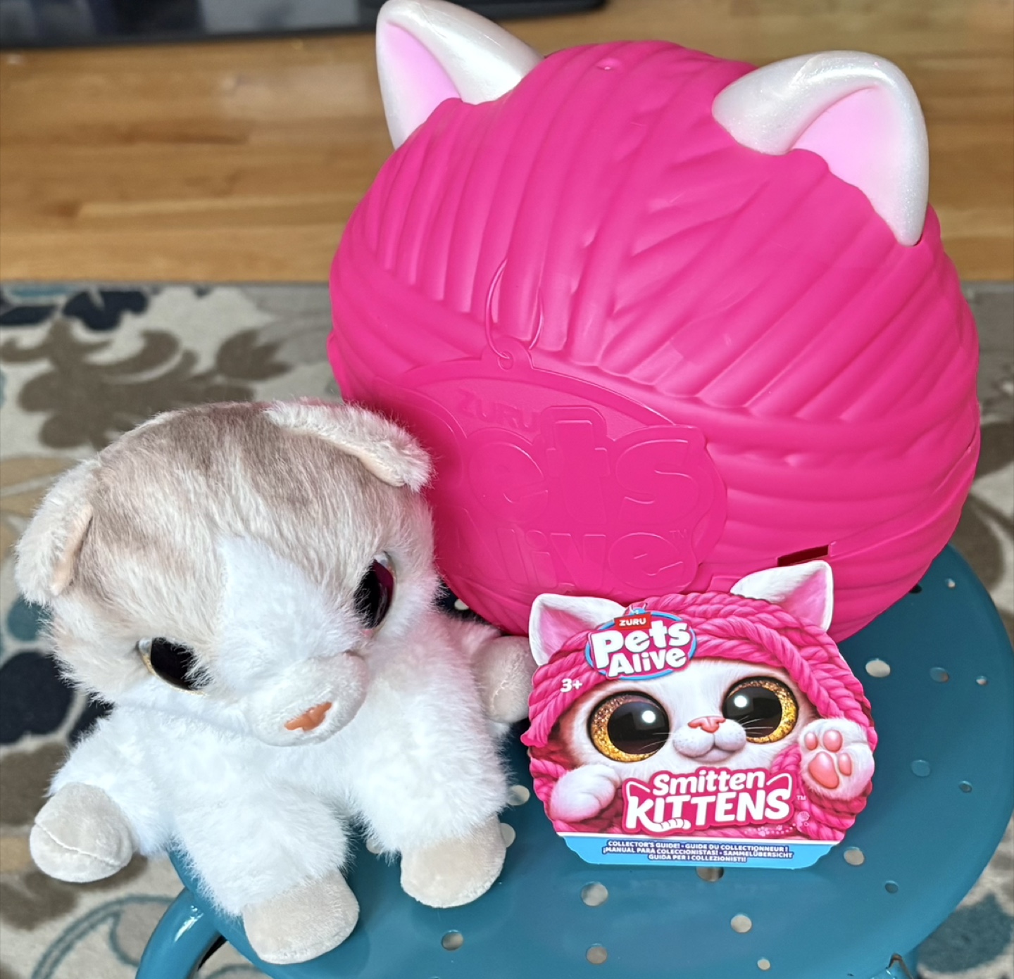 Selling a Zuru Pets Alive Smitten Kittens toy! It's in great condition and ready for a new home. Comes with the cute kitten plush and the yarn ball container. It's a fun surprise toy for kids! It purrs and meows when you pet it . Uses batteries.
