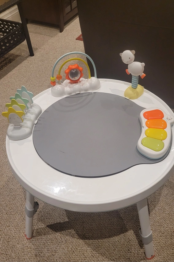 Selling a Skip Hop Explore & More Jumpscape Entertainer! It's in great condition and ready for a new little one to enjoy. Converts into a table. Removable toys. This entertainer is designed to grow with your baby through different stages of development. It features a variety of engaging activities and toys to stimulate your baby's senses and encourage exploration