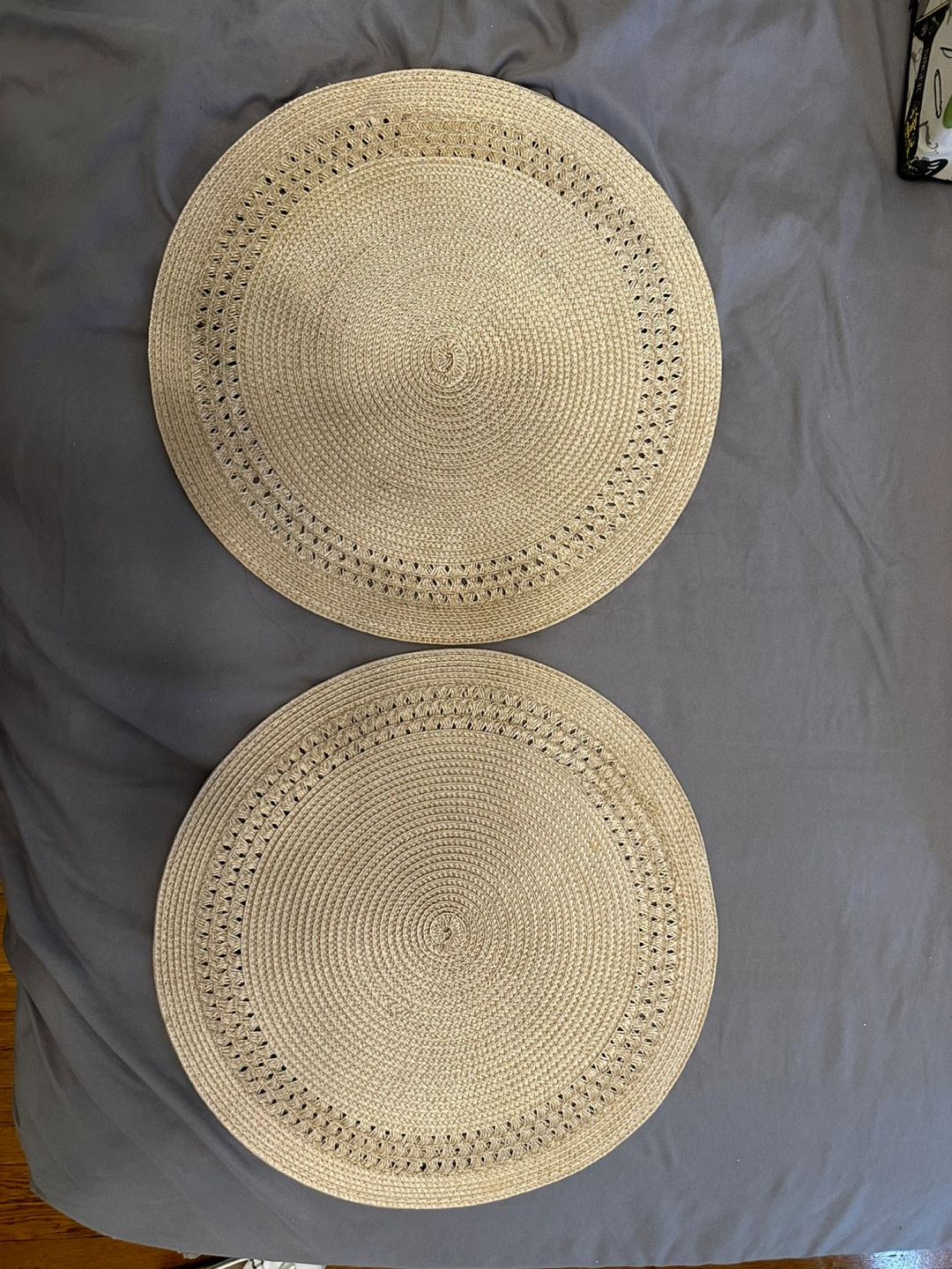 Selling a set of two round woven placemats. They're in great condition and ready to add a natural touch to your dining table!