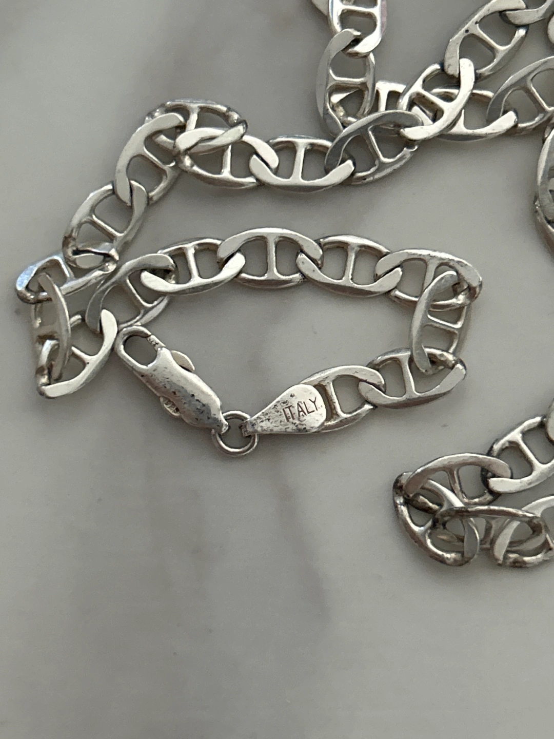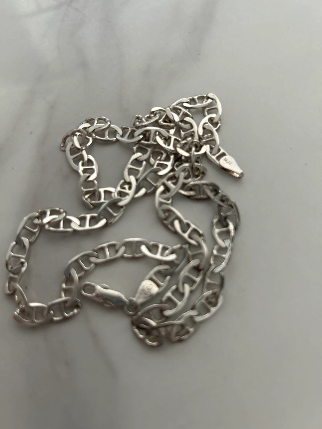 56Selling a lovely silver marinar chain necklace. It's in great condition and has a unique design. Perfect for adding a touch of elegance to any outfit!