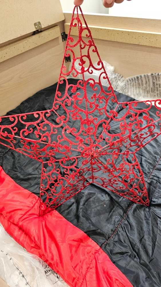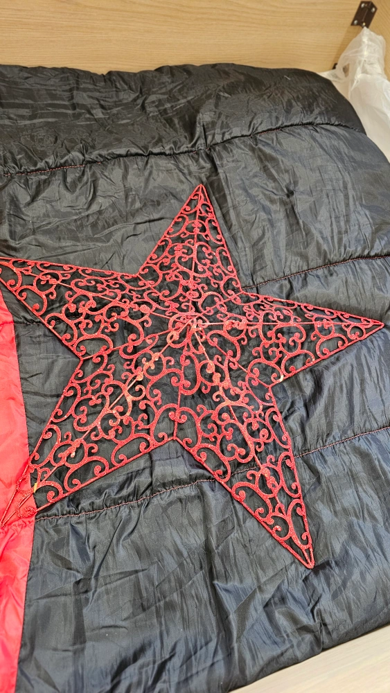 A red star decor with a unique design! It's in great condition and would look great in any room