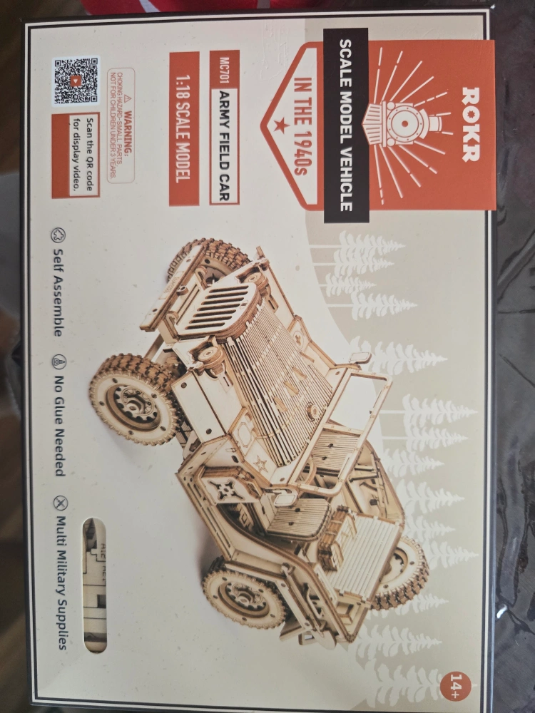 Selling a ROKR MC701 Army Field Car. It's a 1:18 scale model vehicle from the 1940s. This is a self-assembly kit, so no glue is needed! It also comes with multi military supplies