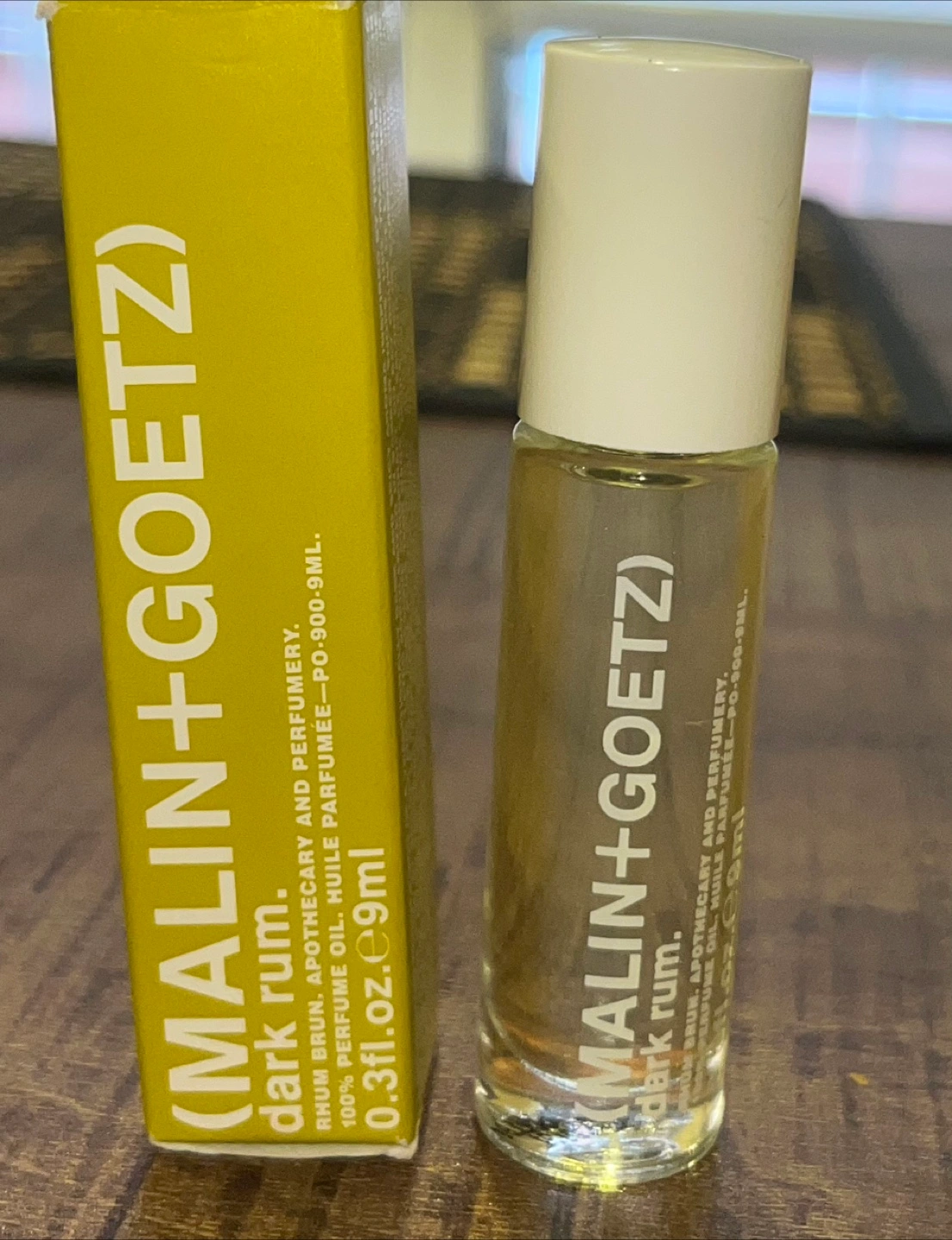 Selling a MALIN+GOETZ Dark Rum perfume oil. It's a 9ml rollerball, perfect for on the go. This is a 100% perfume oil. The scent is Dark Rum. Comes with the box!