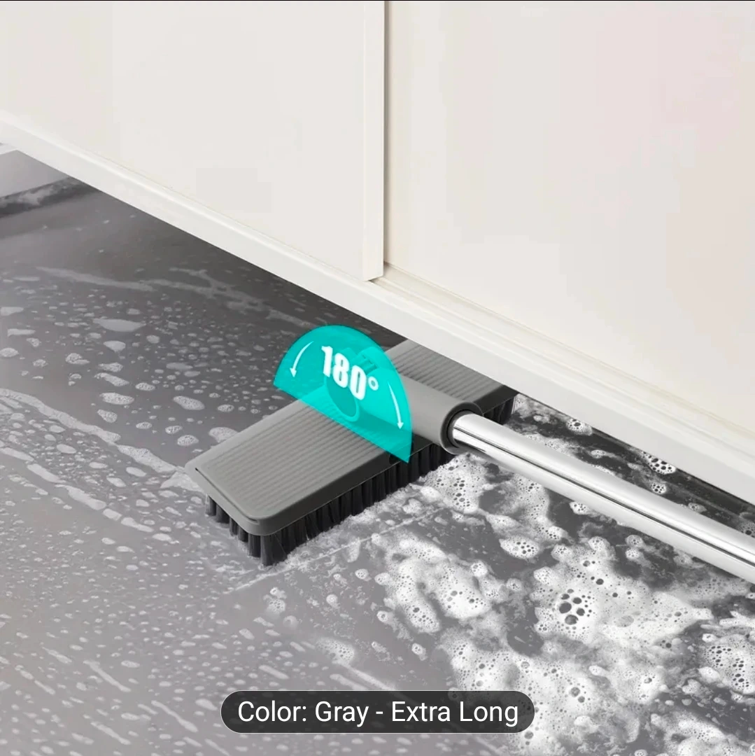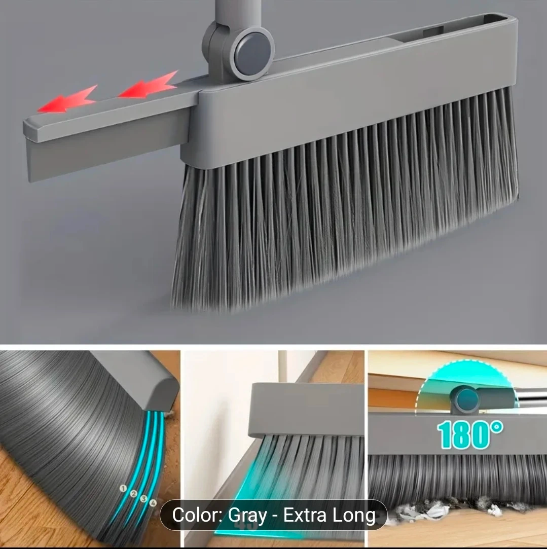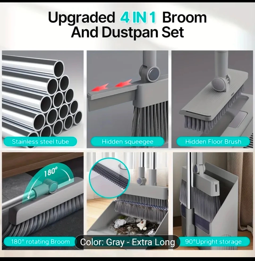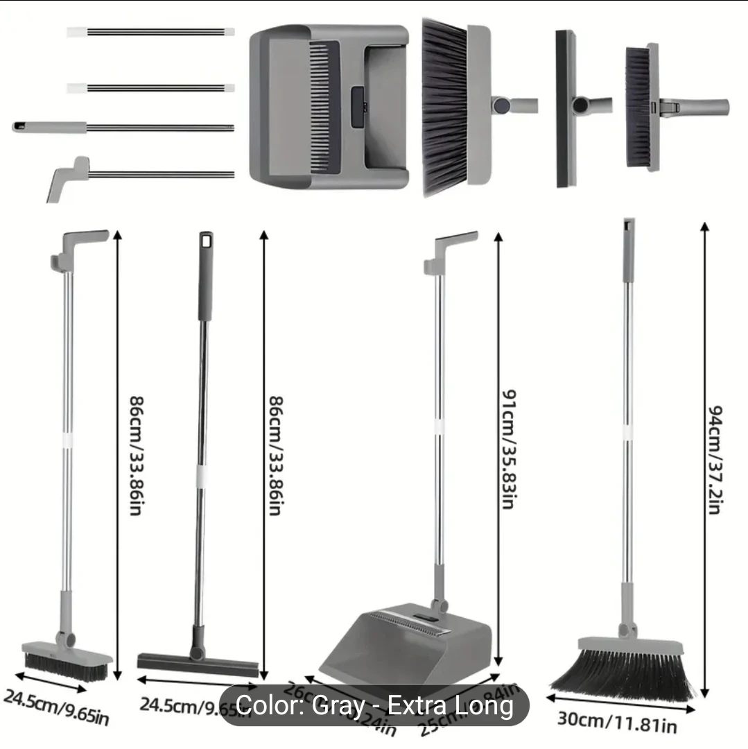 Upgraded 4-in-1 Broom and Dustpan Set - Gray Extra Long