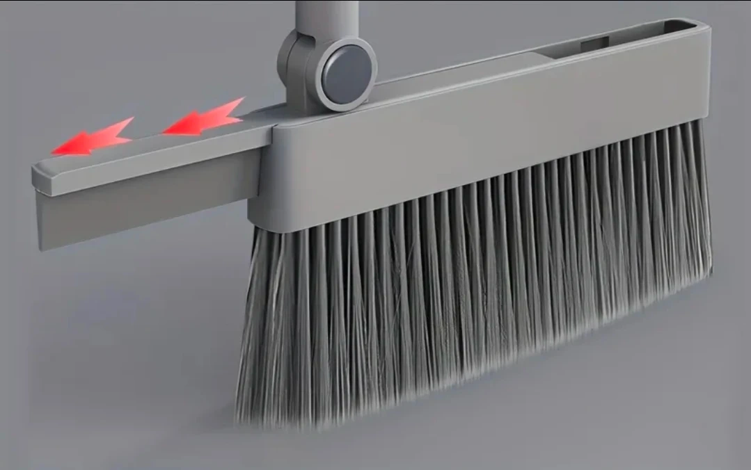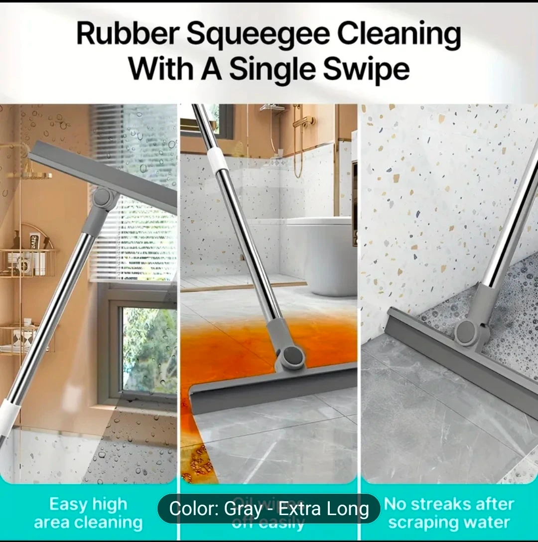 This 4-in-1 broom and dustpan set features a stainless steel tube handle and a 180-degree rotating broom head. It has a hidden squeegee for effective cleaning and an upright storage design. The broom bristles are designed to capture fine dust.