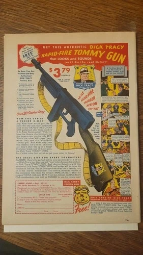 Back Cover: Features a fantastic vintage Dick Tracy "Rapid-Fire Tommy Gun" advertisement—perfect for fans of 1940s Americana and toy history.
