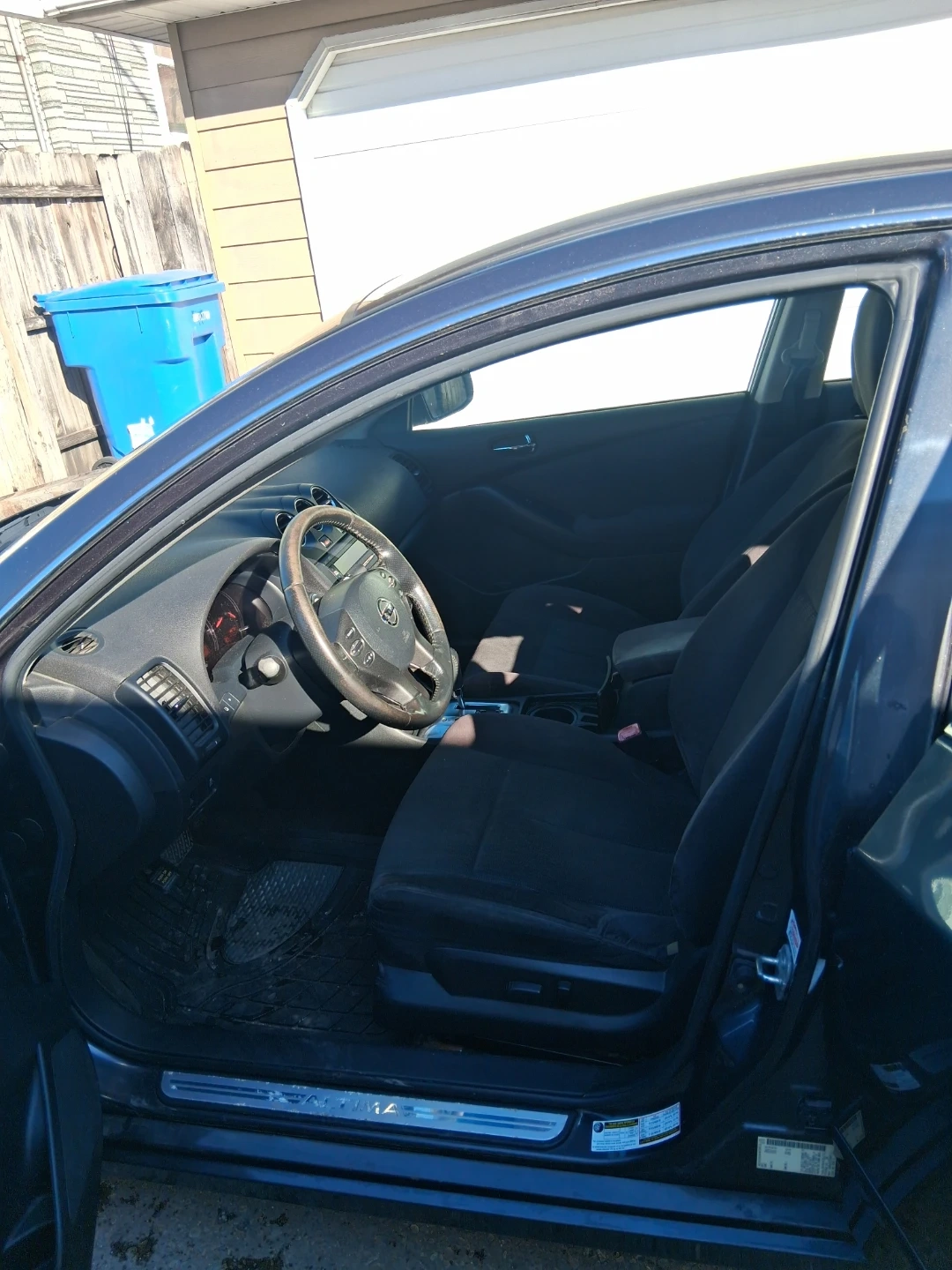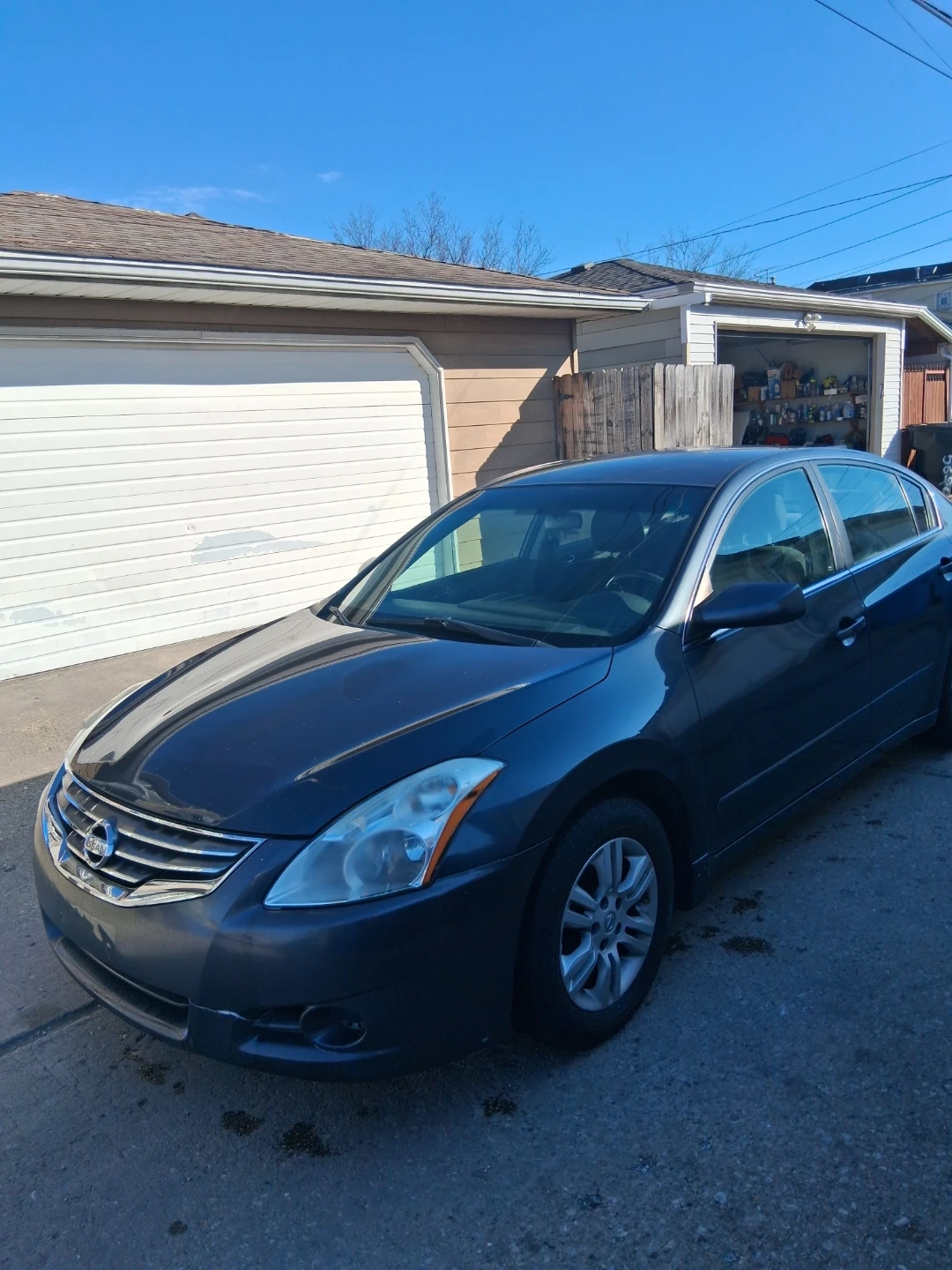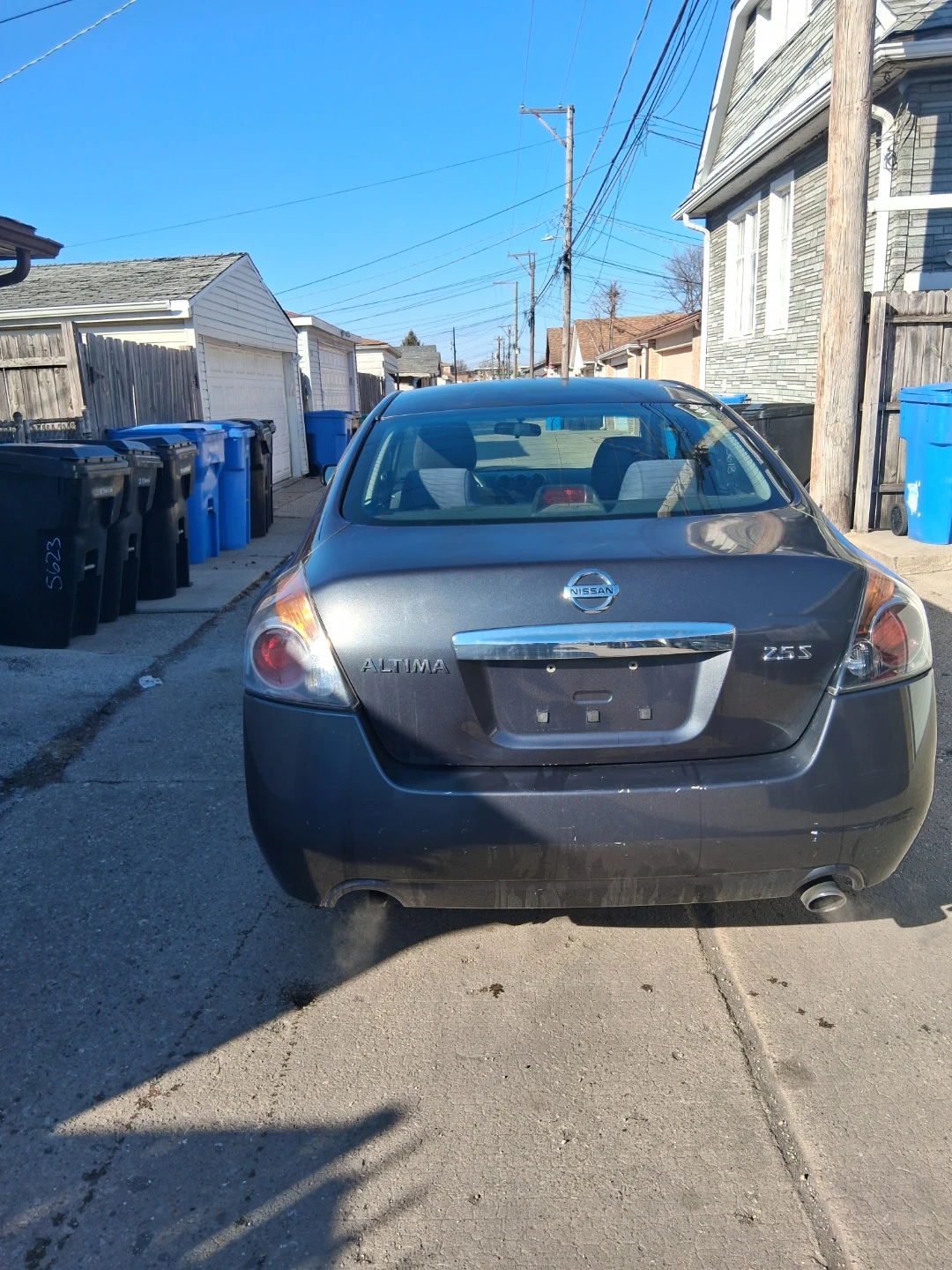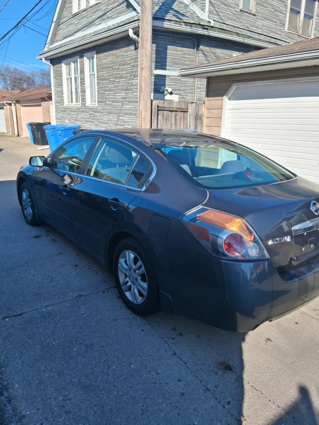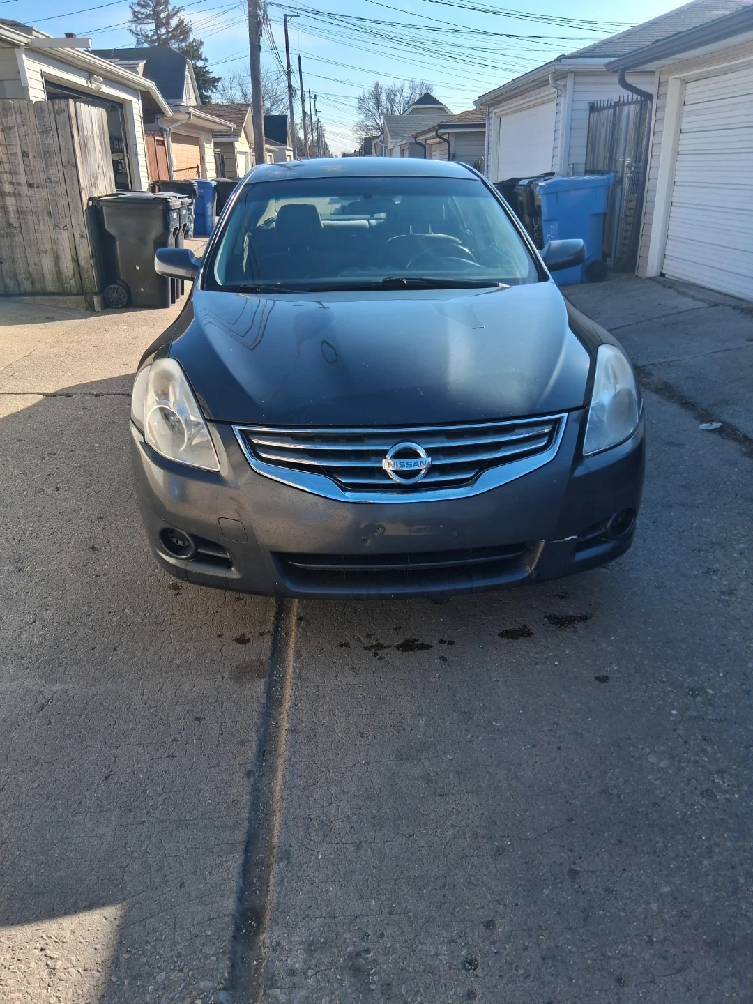Dark gray Nissan Altima sedan. Four doors. Interior features cloth seats and an automatic transmission. This car's exterior color is a dark gray. It's a reliable sedan option.
