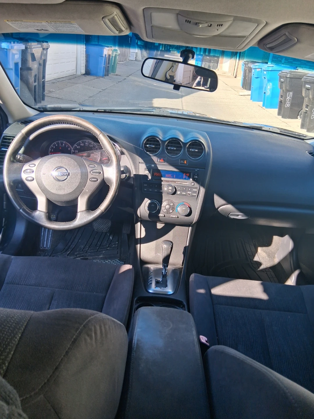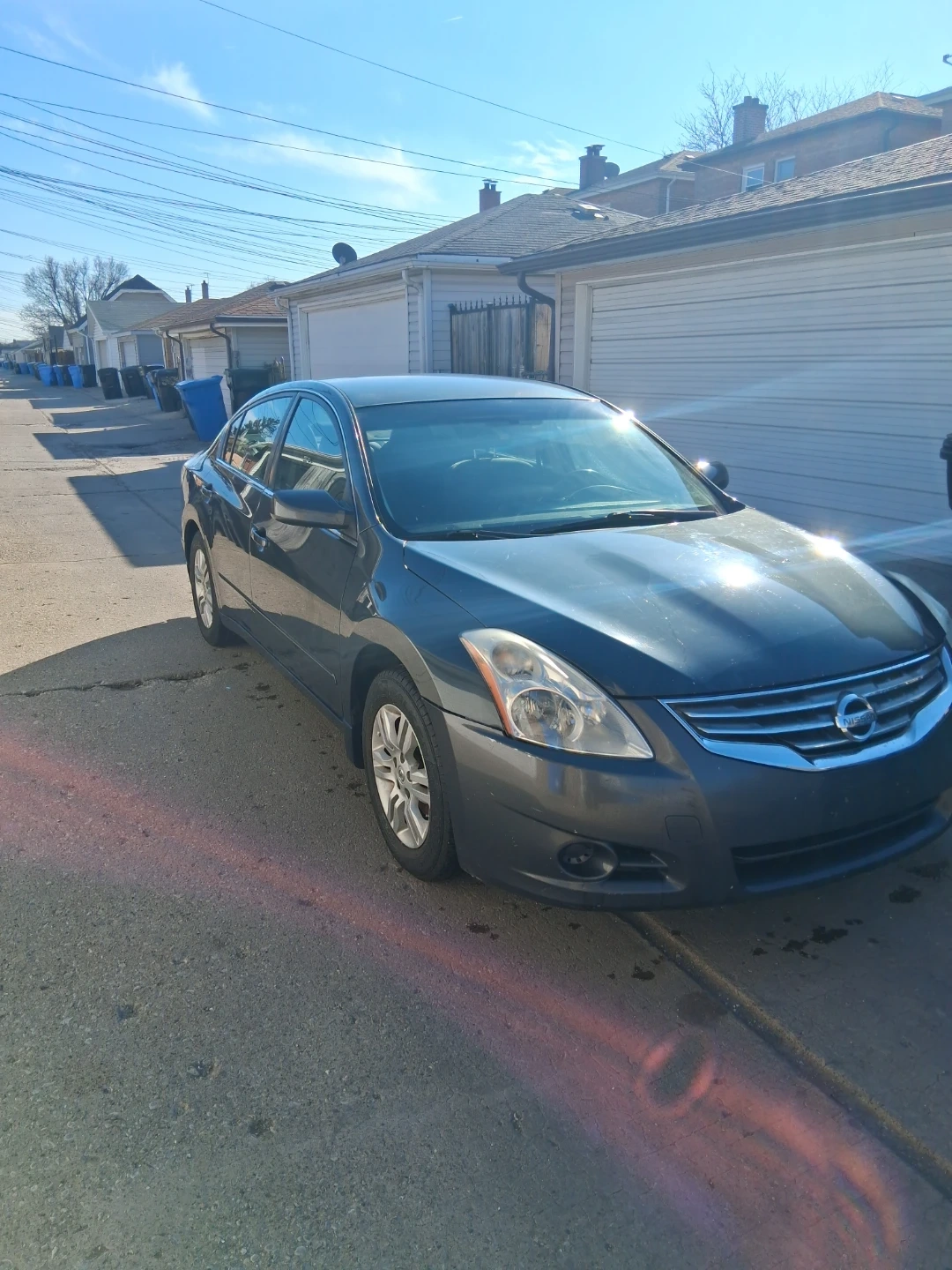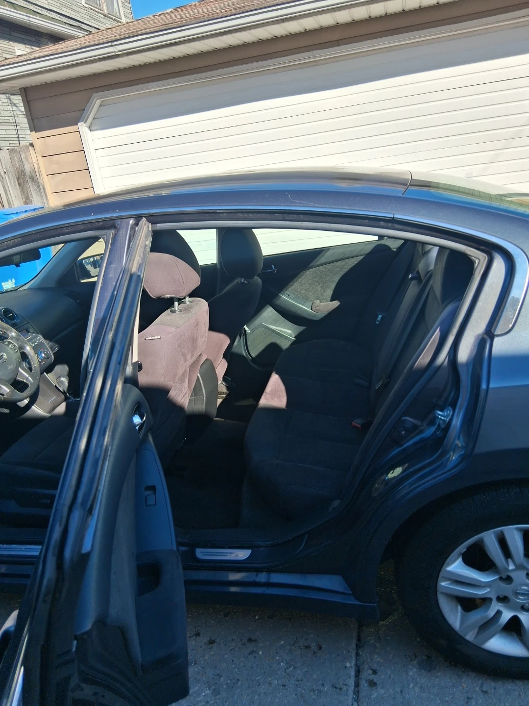 Dark gray Nissan Altima sedan. Four doors. Interior features cloth seats and an automatic transmission. This car's exterior color is a dark gray. It's a reliable sedan option.