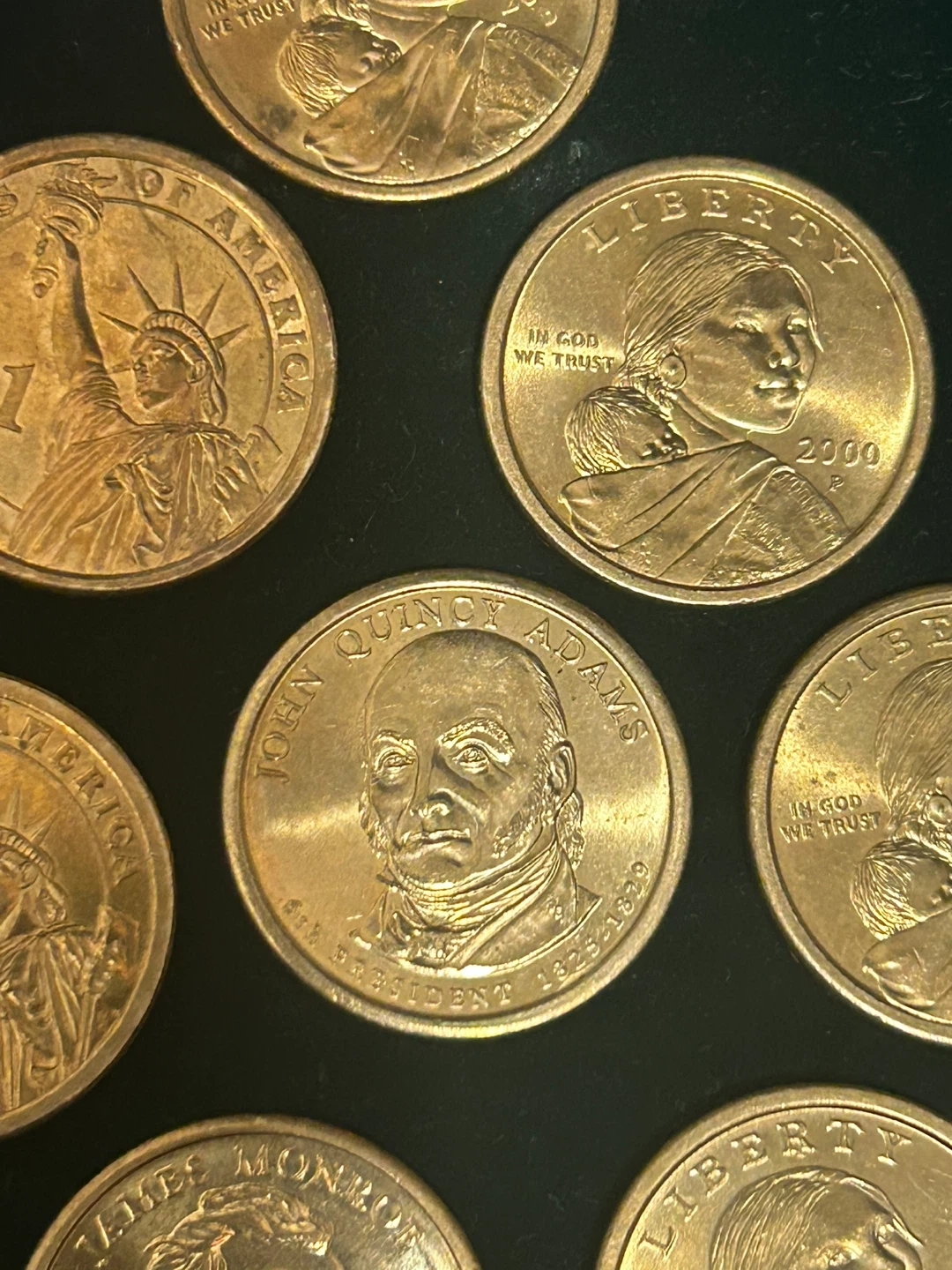 A collection of United States Presidential dollar coins, featuring various presidents. As well liberty gold coins . These coins are in good condition and are great for any coin collector. This set includes coins that have mint errors making worth more . See all pictures for details. Selling set for only 35 pristine condition, with stunning detail and craftsmanship that makes it a must-have for any serious coin collector.