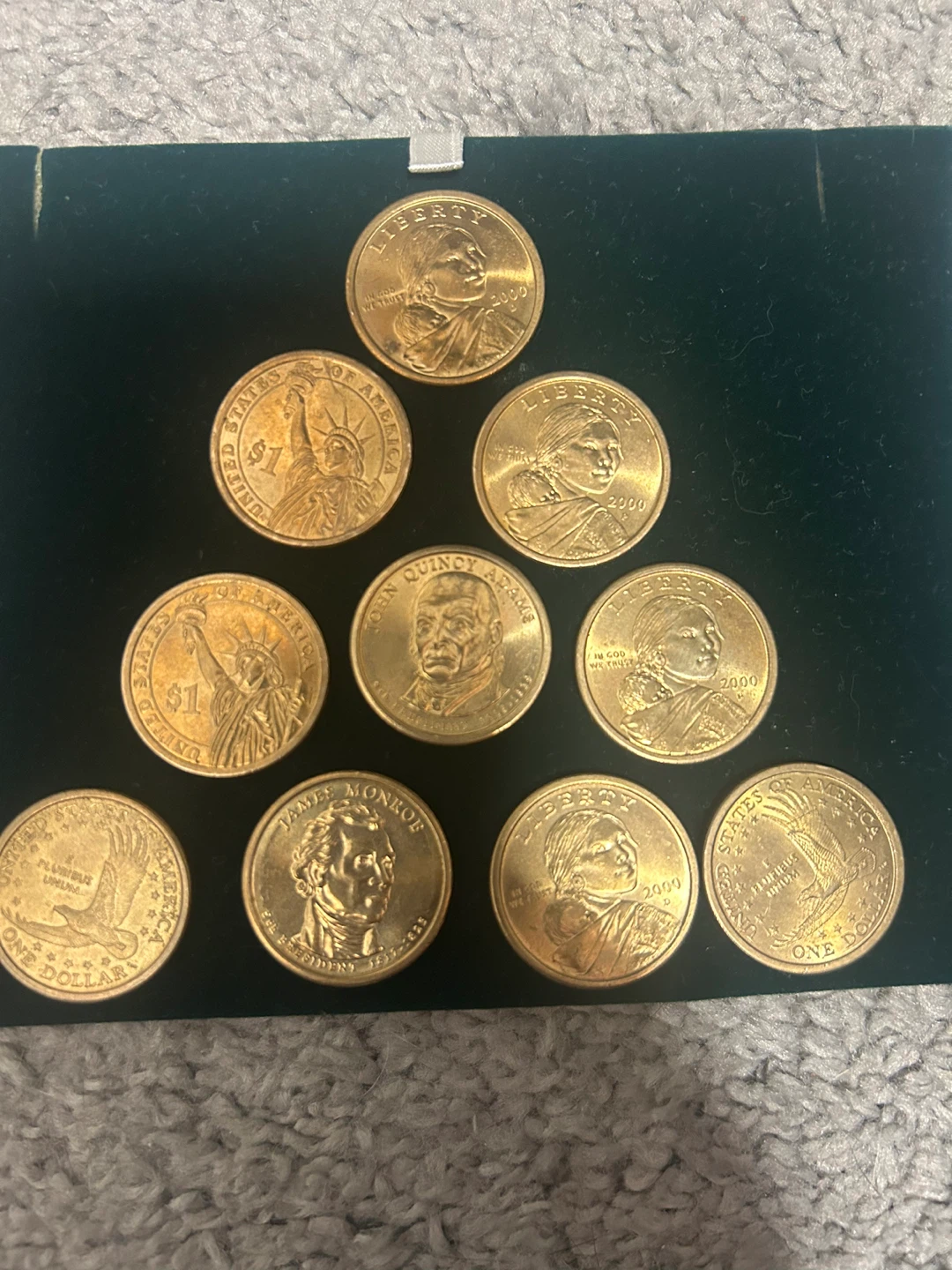 A collection of United States Presidential dollar coins, featuring various presidents. As well liberty gold coins . These coins are in good condition and are great for any coin collector. This set includes coins that have mint errors making worth more . See all pictures for details. Selling set for only 35 pristine condition, with stunning detail and craftsmanship that makes it a must-have for any serious coin collector.