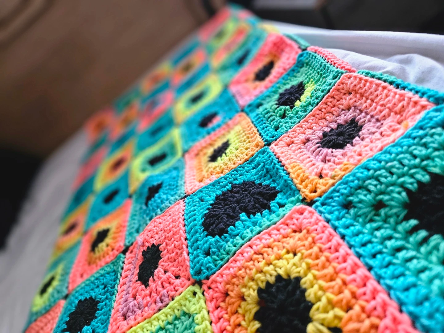 Handmade Crochet Granny Square Blanket Throw