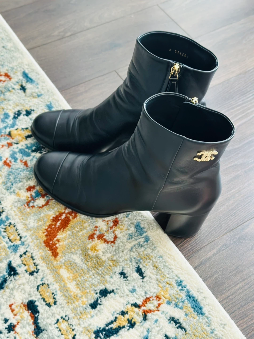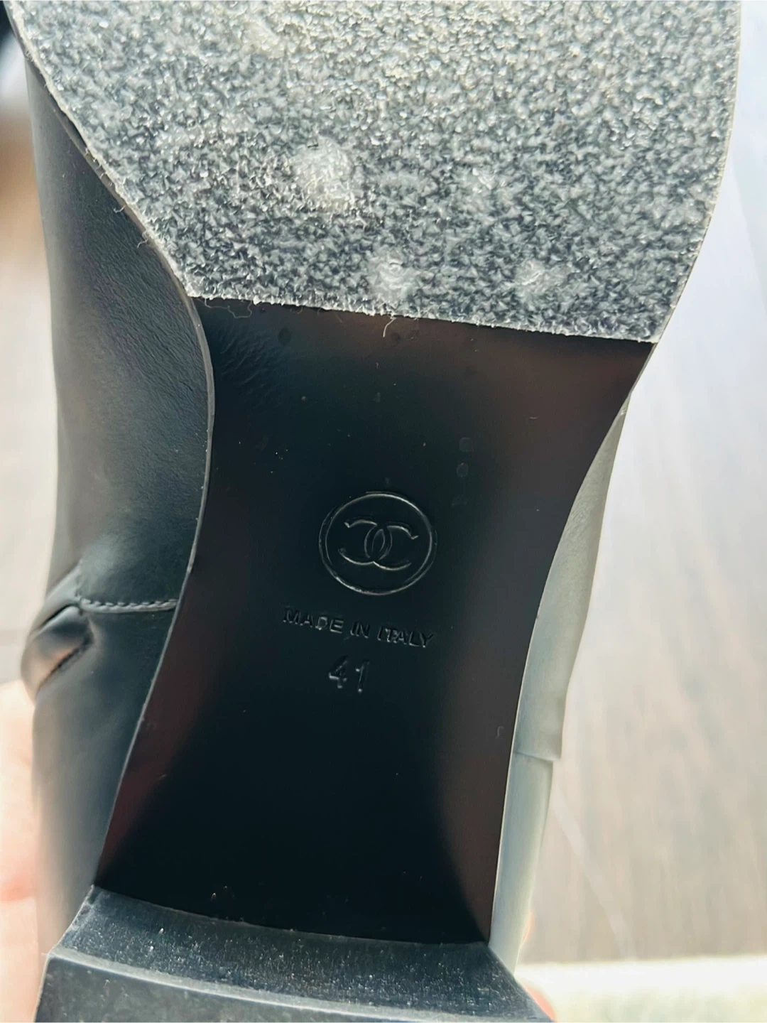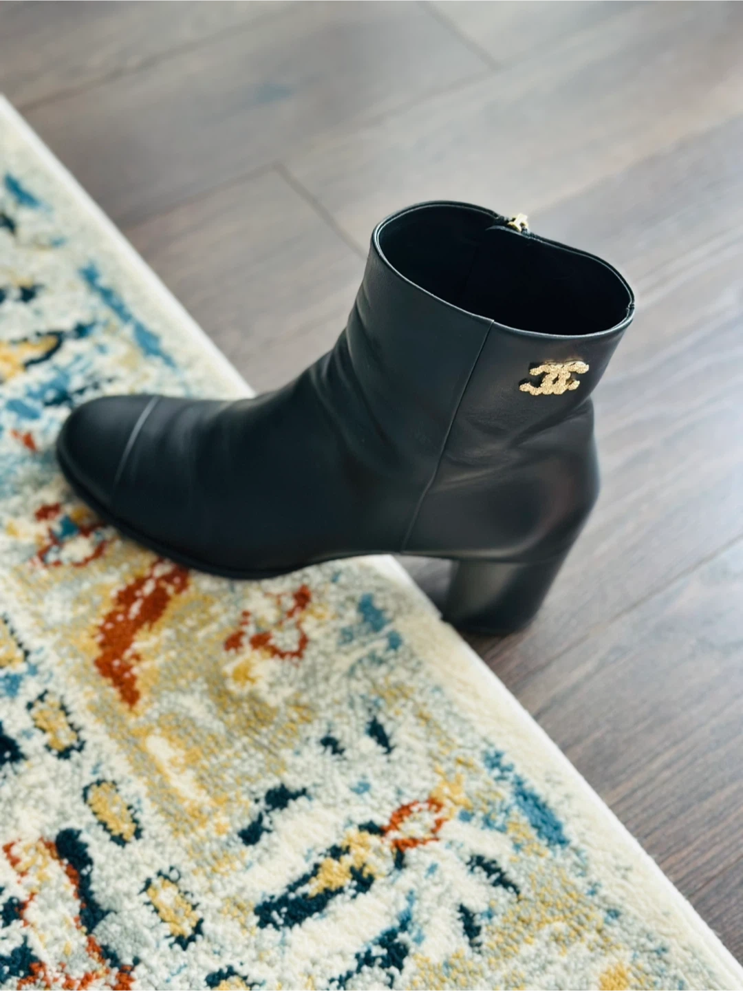 Chanel Black Leather CC Logo Ankle Boots (Size 41)