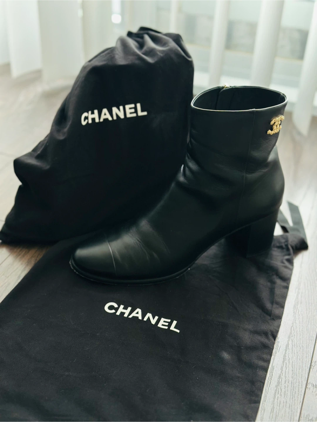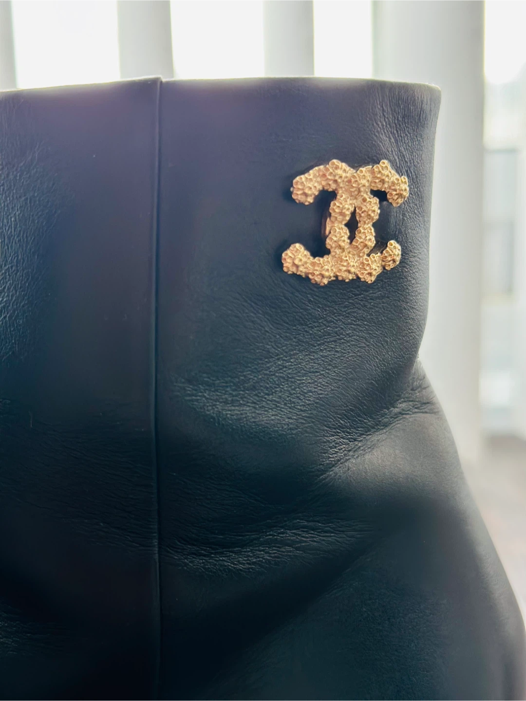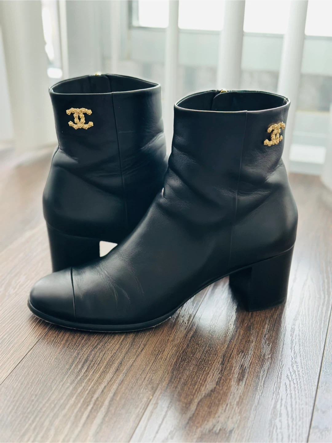 Chanel Black Leather CC Logo Ankle Boots (Size 41)