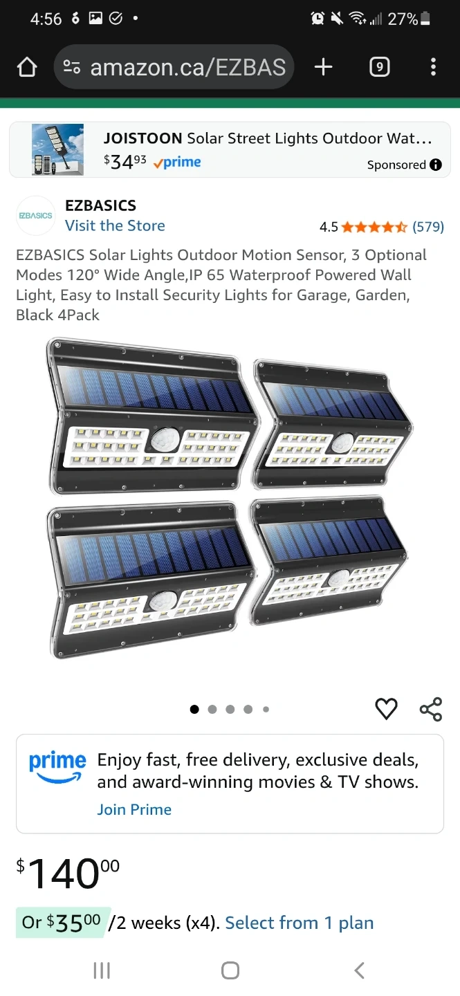 Selling a 2-pieces of EZBasics solar motion sensor lights. These lights have a stylish design and radiant brightness. They feature 56 LEDs and are perfect for outdoor use.