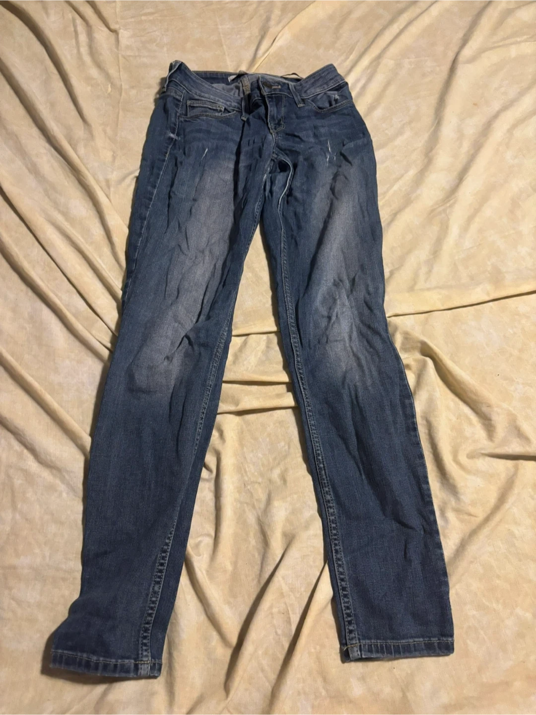Guess skinny low rise jeans in blue wash. Made with a blend of cotton, polyester, and elastane for comfort and stretch. A classic denim staple for everyday wear!