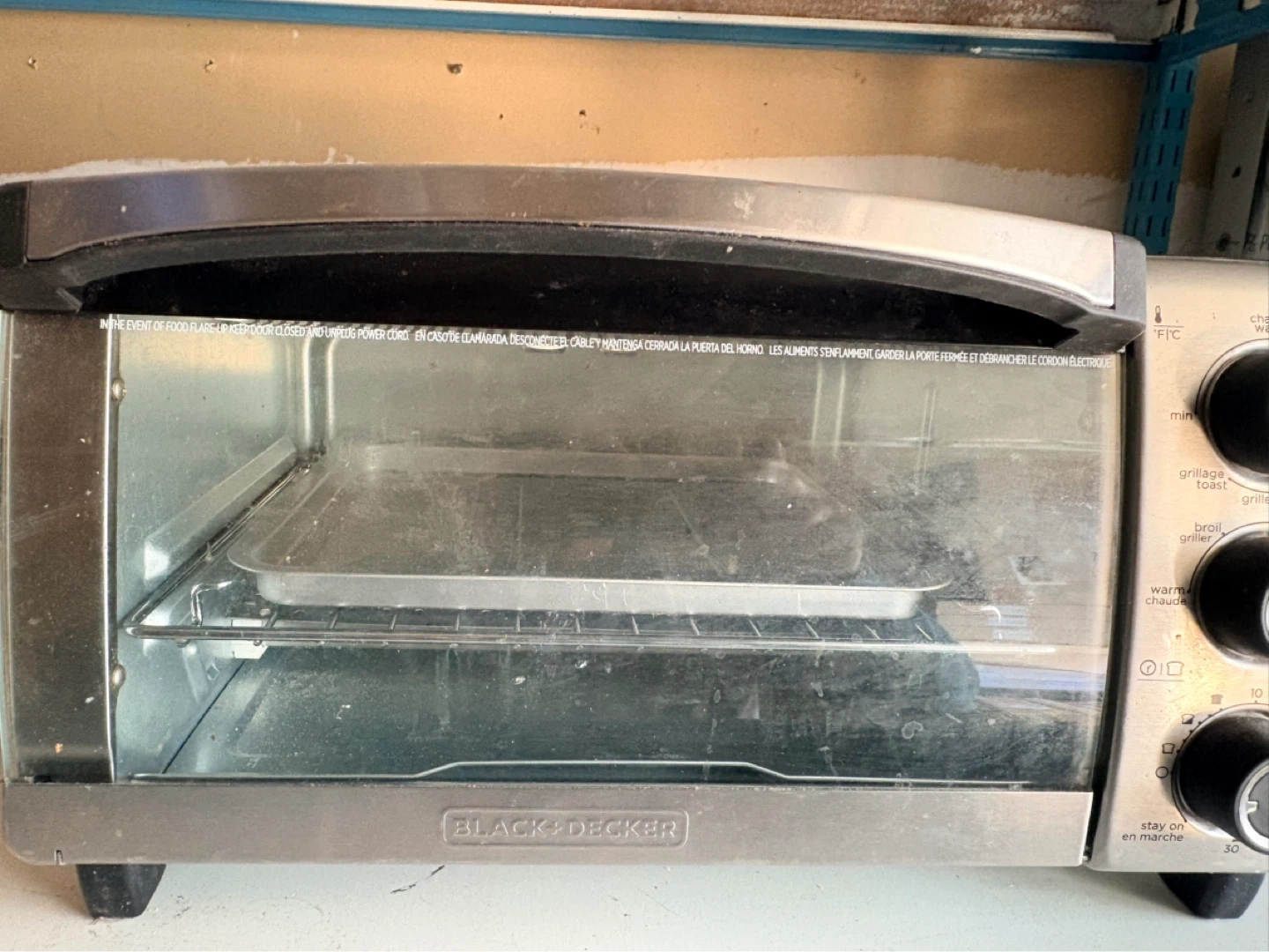 This Black + Decker toaster oven is a versatile addition to any kitchen. It includes a baking tray and a wire rack for various cooking needs. Functions include toast, broil, and bake. We bought and use 2 times after never used neat and clean, no issues