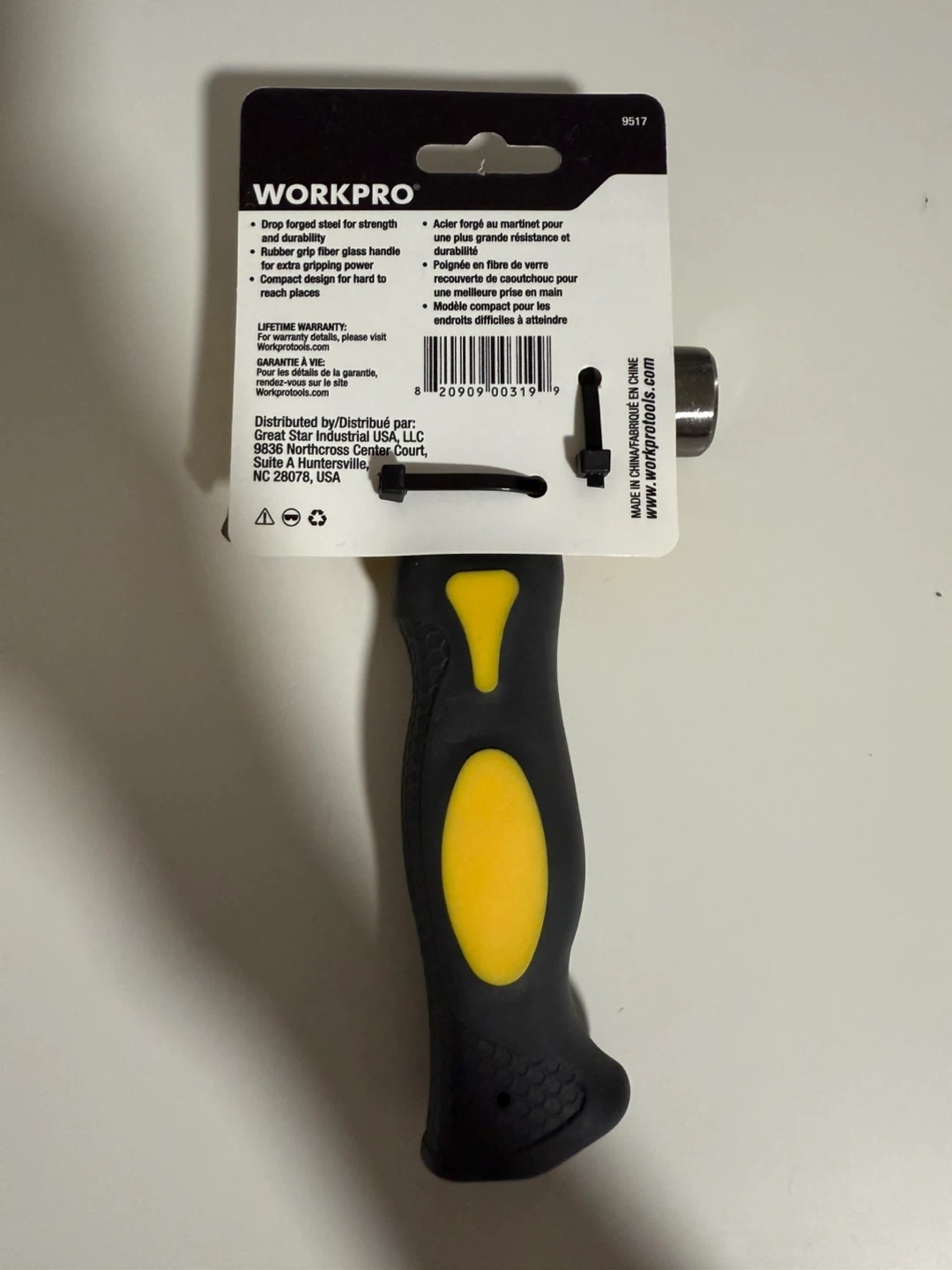 Selling a WORKPRO 8oz Mini Hammer in excellent condition! It features a drop-forged steel head for strength and a rubber grip fibre glass handle for comfortable use. The compact design makes it perfect for hard-to-reach places. A great tool to have around the house!
