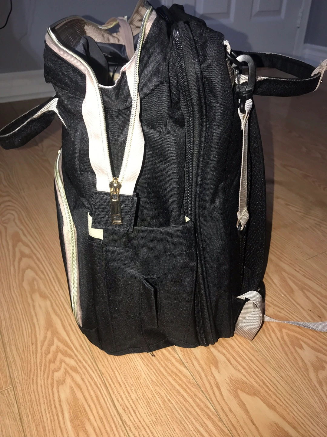 Selling a black diaper bag backpack. It's in great condition and ready for a new home. Perfect for parents on the go! It also comes with a phone charging port, also you can do a dipper change at anywhere and anytime because the bag can be extended out has a cushion pad and extended rods to gives it a perfect support. Quick easy and on the go for you and your baby.