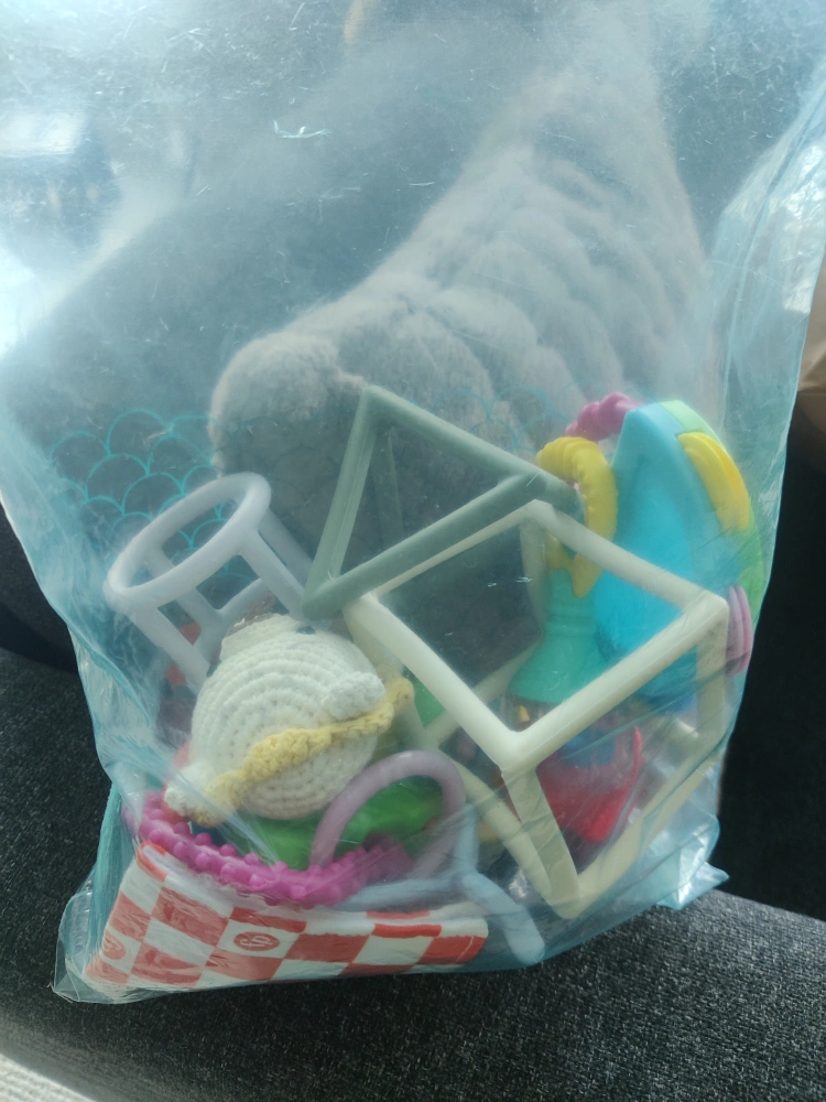 I have a bag of baby and kids toys for sale! There's a variety of different toys inside, perfect for keeping your little one entertained