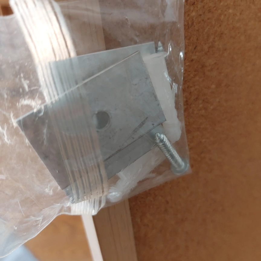 Comes with hardware to hang on the wall. 3 containers of tacks included (opened).