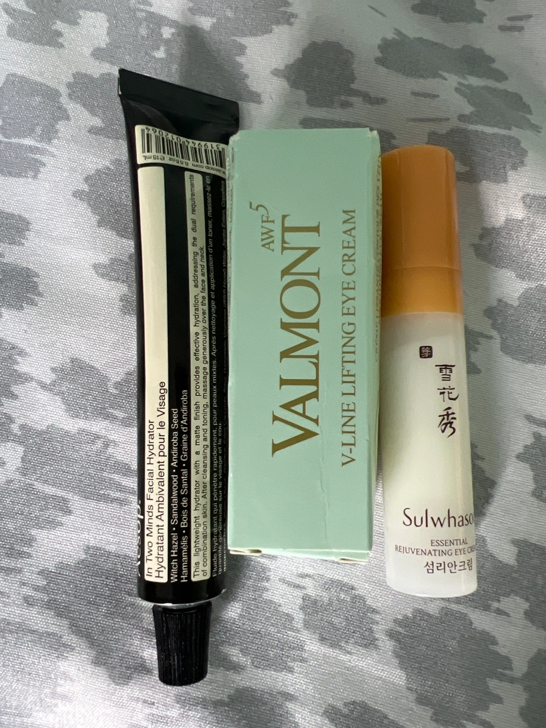 Selling a Valmont V-Line Lifting Eye Cream and Sulwhasoo Essential Rejuvenating Eye Cream! Also included is a Aesop In Two Minds Facial Hydrator This lightweight hydrator with a matte finish provides effective hydration, addressing the dual requirements of combination skin.
