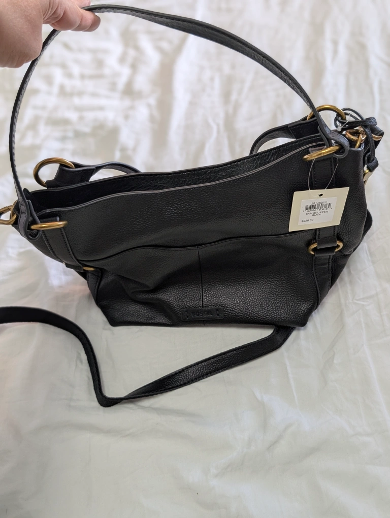 Check out this Fossil Sam shopper bag in black! It's a stylish shoulder/ crossbody bag made of leather. The original price was $228.