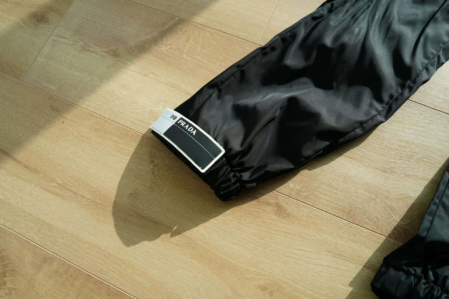 104Selling a pair of black Prada nylon pants. They are in great condition and feature the Prada logo on the leg. Perfect for a casual or sporty look!