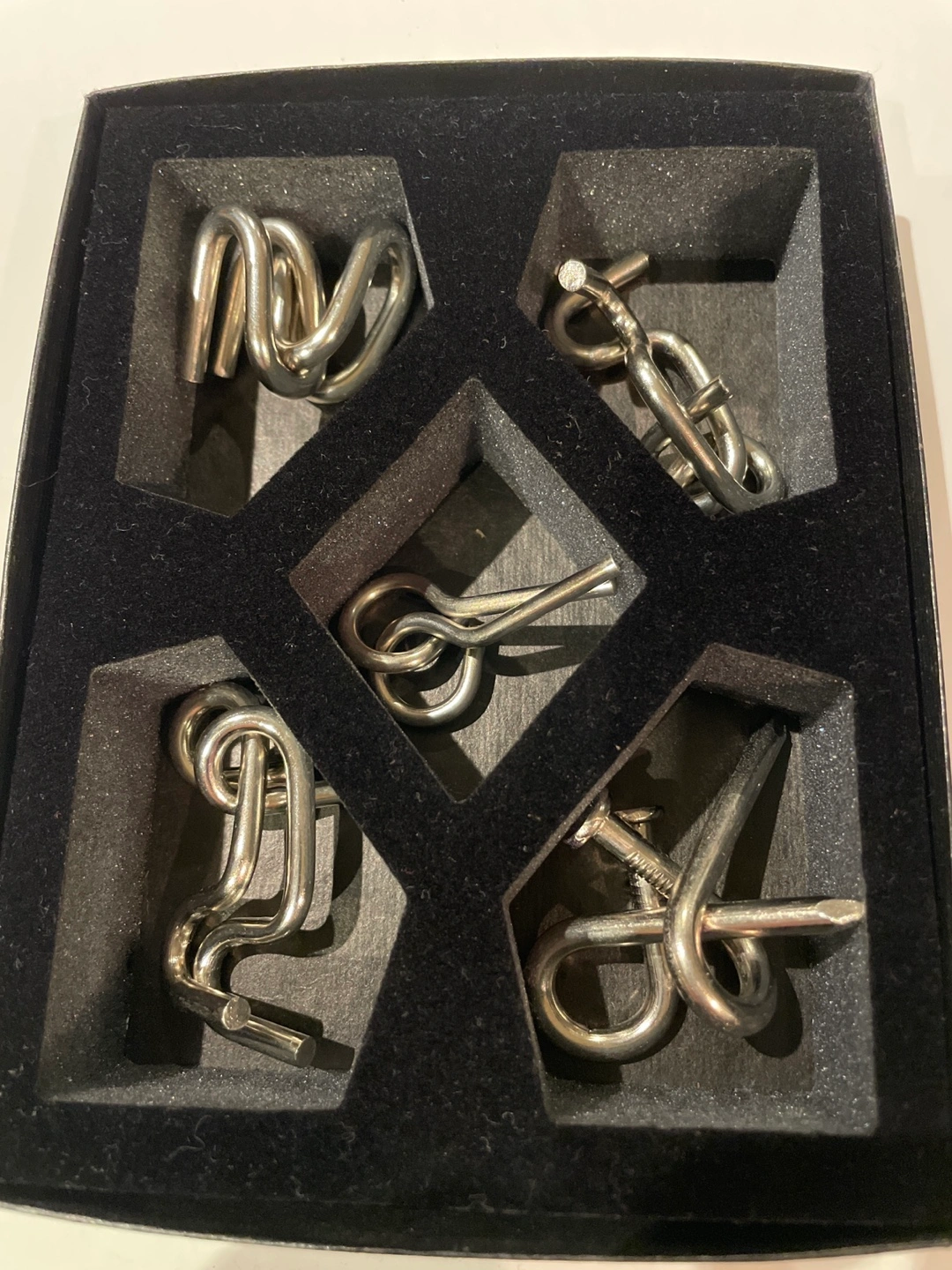 Selling a Parlor Puzzles set from the Guggenheim Museum. It includes four metal puzzles in the original box. Great for puzzle enthusiasts!