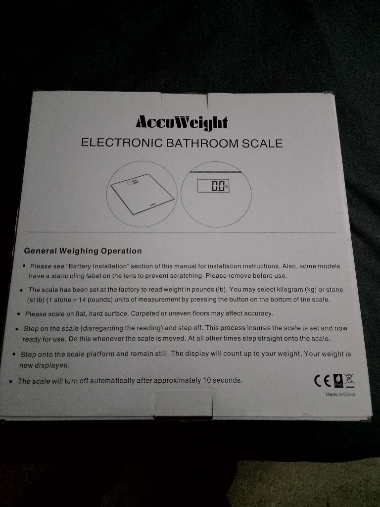 Selling an AccuWeight digital bathroom scale in good condition. It's perfect for keeping track of your weight at home. Easy to use and accurate. it's too big for my bathroom now, that's why I'm selling it.