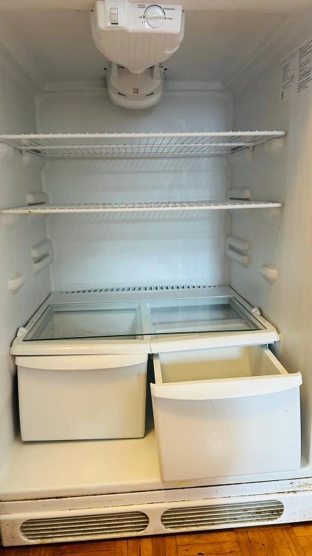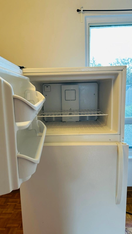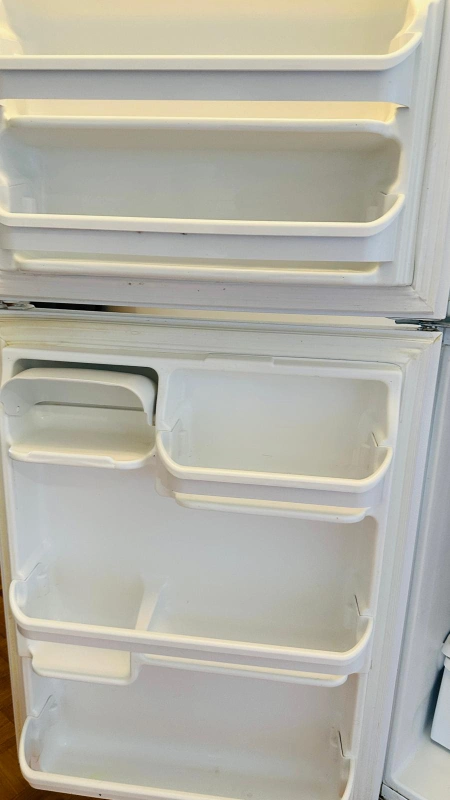 Selling a white Frigidaire refrigerator with a top freezer. It's in good working condition and ready to keep your groceries fresh! The interior is clean, and it includes all the shelves and drawers you see in the photos. Perfect for a small family or apartment