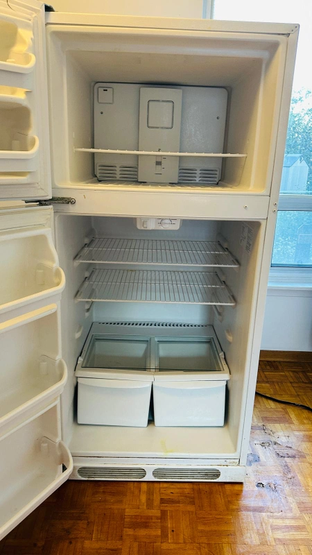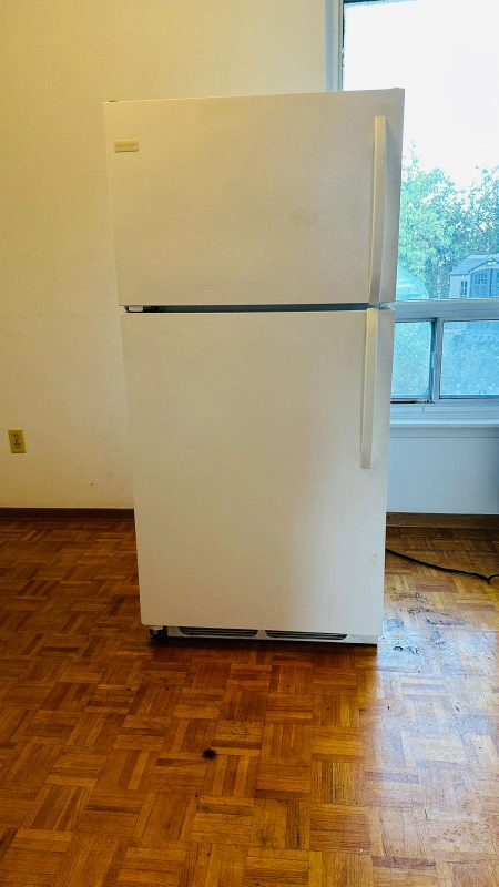 Selling a white Frigidaire refrigerator with a top freezer. It's in good working condition and ready to keep your groceries fresh! The interior is clean, and it includes all the shelves and drawers you see in the photos. Perfect for a small family or apartment