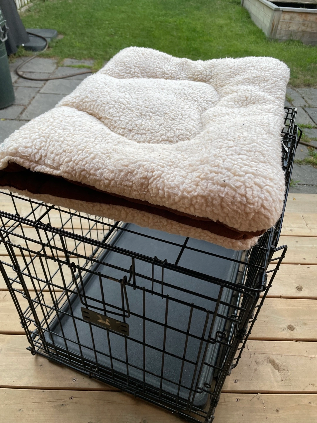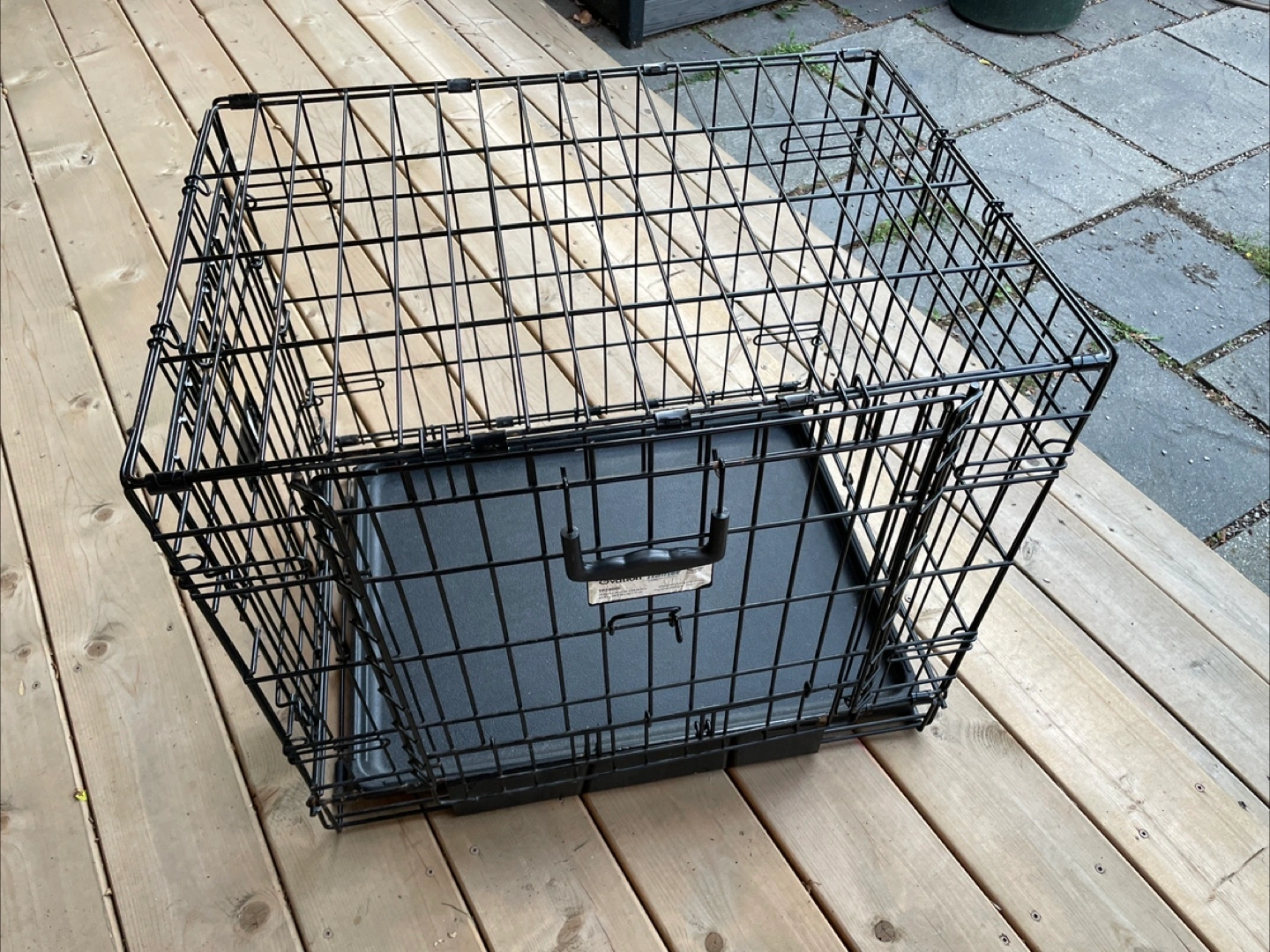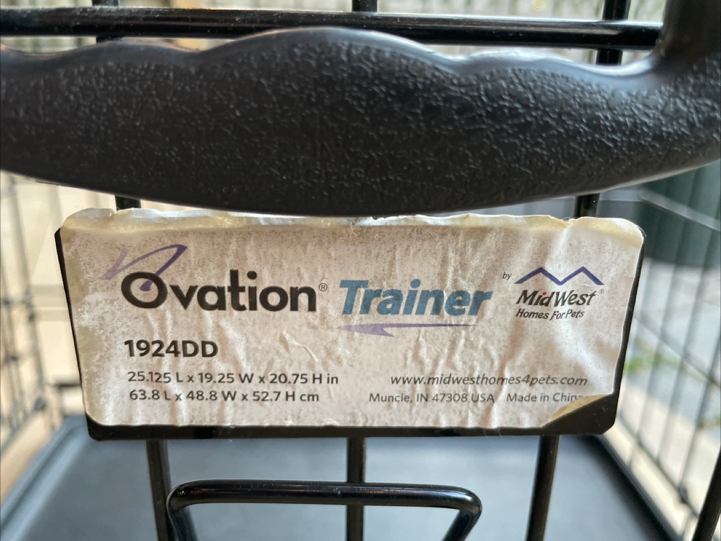 Selling a used dog crate by MidWest Homes for Pets Ovation Trainer dog crate, model 1924DD. It measures 25.125 inches long x 19.25 inches wide x 20.75 inches high (63.81 cm x 48.8 cm x 52.7 cm). Great for training your furry friend!