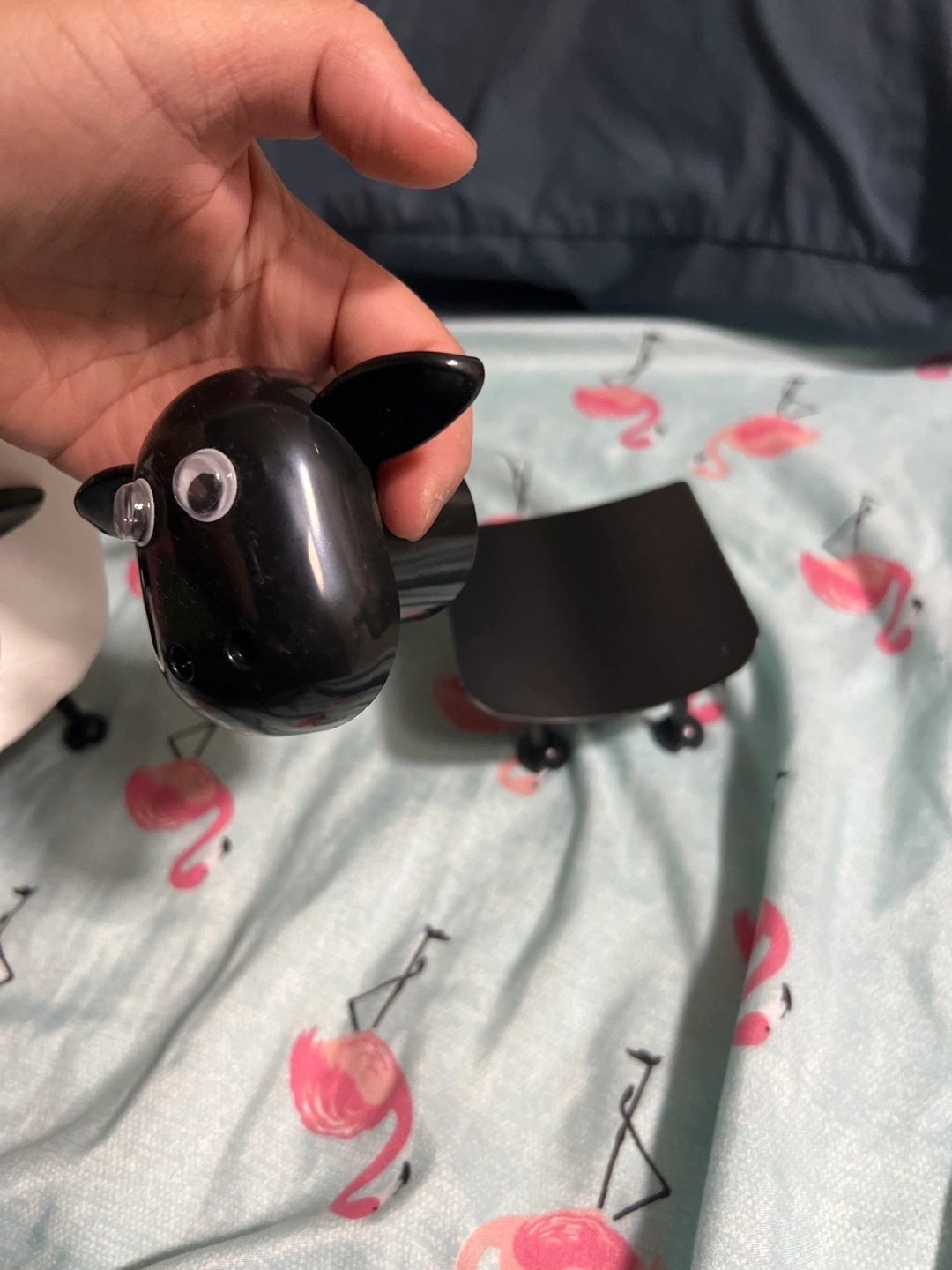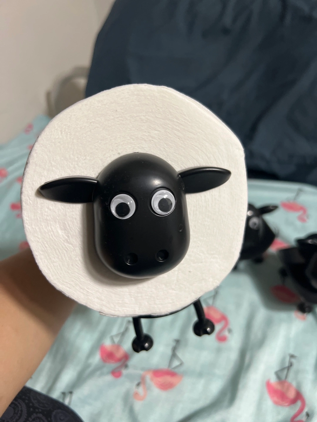 Super cute sheep toilet paper holder! It adds a fun touch to any bathroom. The sheep are black and white and in great condition