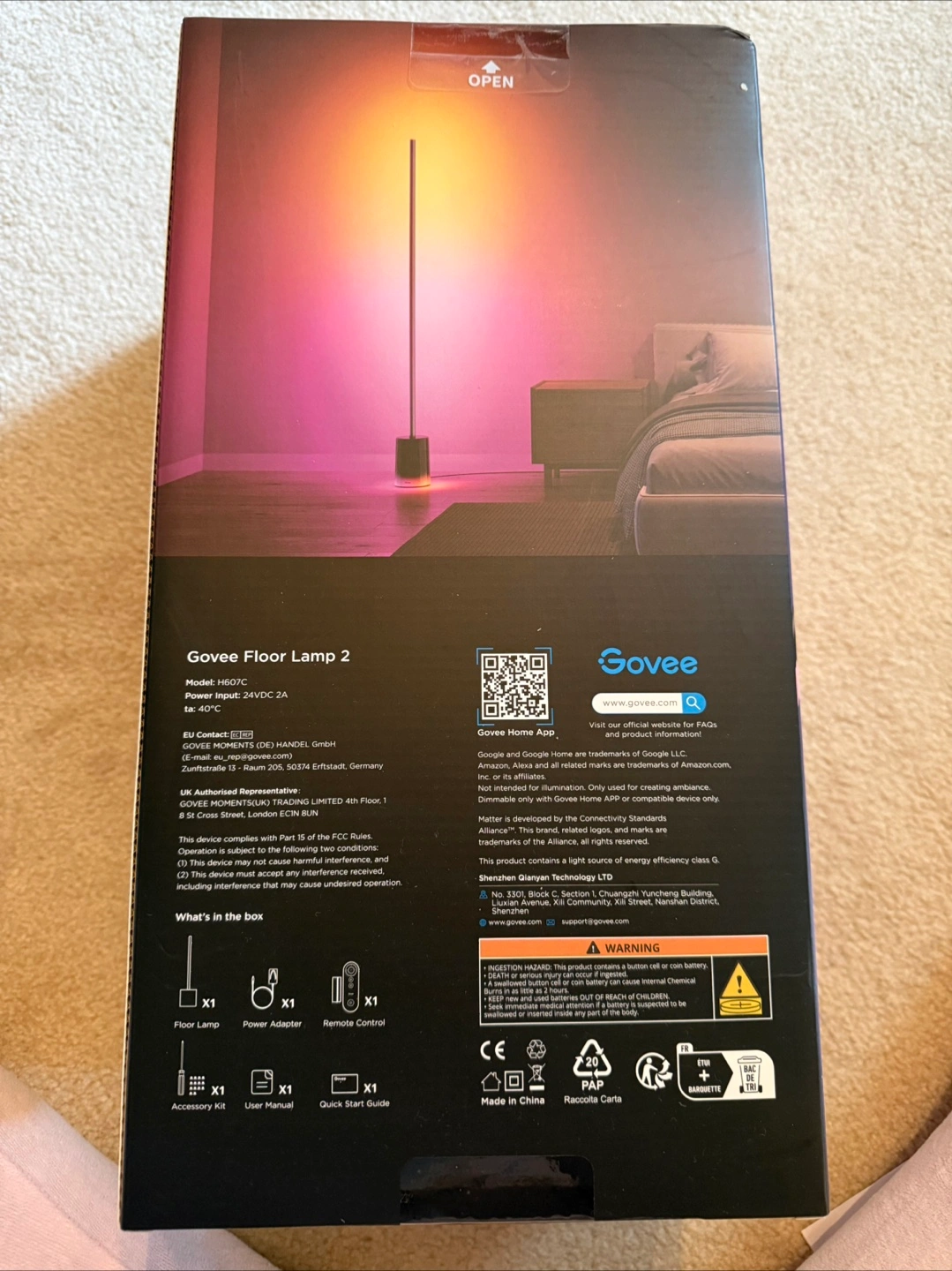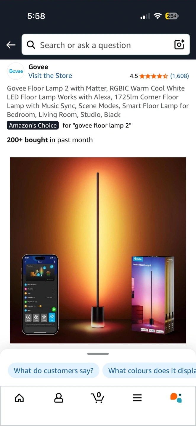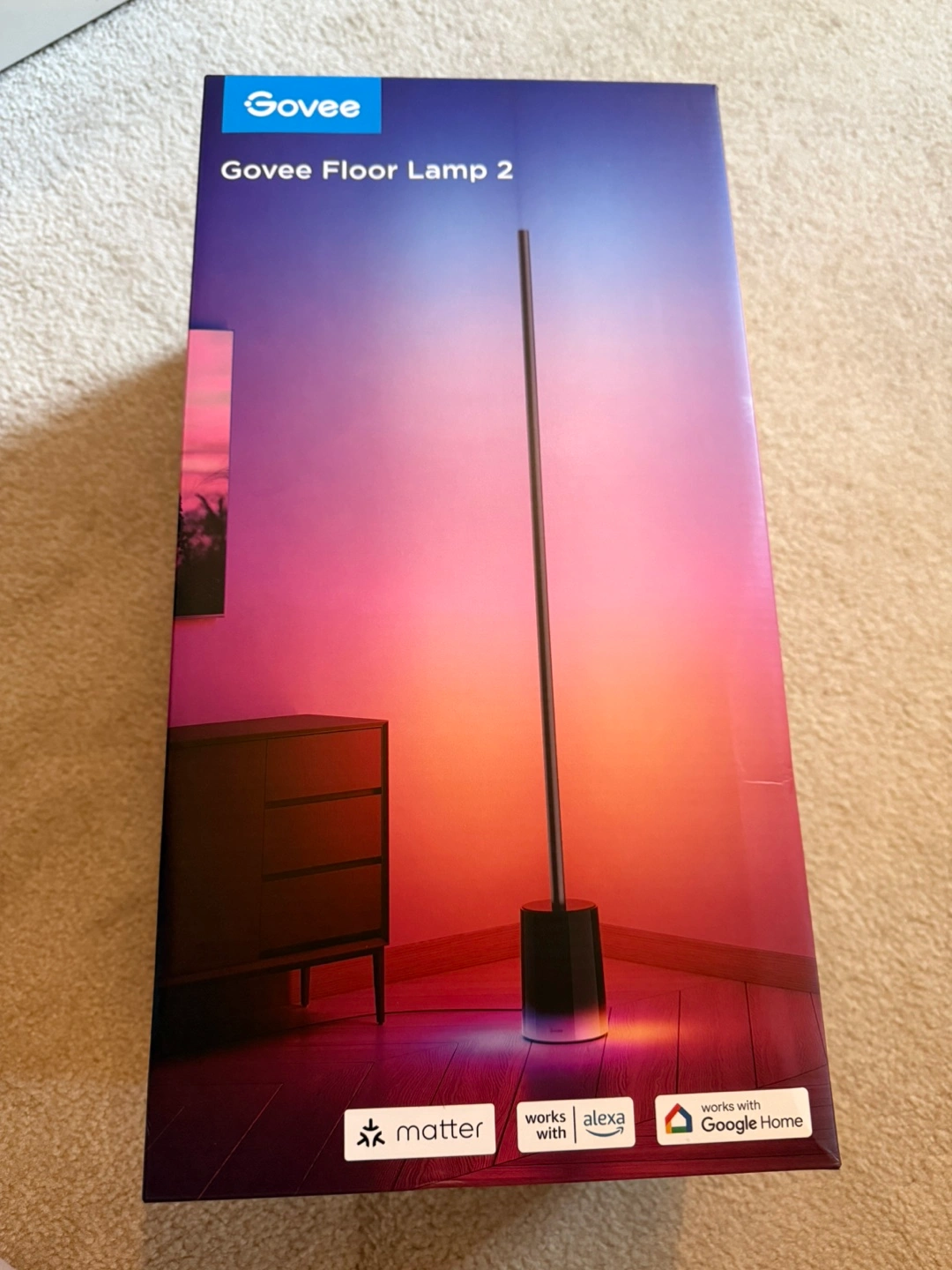 68Selling a NEW Govee Floor Lamp 2! It features RGBIC a changeable LED lighting and works with Alexa. It's a 1725lm corner floor lamp perfect for a bedroom, living room, studio, or as a smart floor lamp. It has different modes for Bedtime, Reading, and Focus! Includes the floor lamp, power adapter, remote control, accessory kit, user manual, and quick start guide. The box is included too I ordered two but only needed one. - Upgraded Modern Design: This 60-in floor lamp body lights up a larger area, while the led floor lamp base's lighting effects infuse vibrancy. Customize the standing lamp lamp post and base separately in a variety of colors and gradients, for elegant personalized lighting. - RGBICWW Technology and Brightness: Enjoy multi-color displays, 1725lm brightness (higher than previous models), and adjustable 2200k-6500k warm/cool whites. This RGBIC floor lamp caters to diverse daily lighting needs like reading, working and relaxing. - Matter-Supported Smart Control: This floor lamp offers voice control and smart dimming capabilities. Effortlessly create a cozy atmosphere and make this smart floor lamp on-off, color-changable, brightness-dimmable and other voice commands via Homekit, Alexa and Google Assistant. - Vibrant Lighting Options: With Govee Home App, discover various lighting choices with 80+ preset scene modes and user-customizable DIY modes. Easily switch up your space's ambiance with effects such as Sunset, Night Light, Rainbow, and Father's Day via this led floor lamps. - Govee Music DreamView Syncing: Use this floor lamp, easily connect up to 10 Govee lights within a 30m range and sync music lighting effects together, creating a captivating visual feast and transporting you to a new level of auditory and visual enjoyment. - Elevated Smart Home Experience: Effortlessly illuminate your smart living space with easy-to-customize timing settings. Also, sync this floor lamp and other Govee lighting products with a single tap for vibrant colors and scene modes. (Note: Supports 2.4GHz WiFi only) - Easy Setup: With user-friendly operation and quick installation, this LED floor lamp lets anyone easily create a smart and cozy home environment while enjoying personalized and convenient lighting.