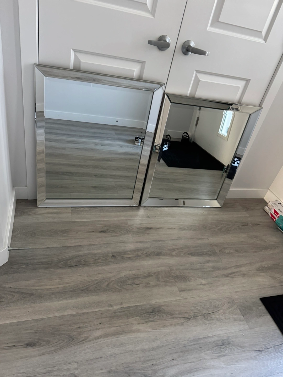 Selling two sets of two framed mirrors. They're in great shape and would look lovely in any room! Perfect for adding a touch of elegance to your home decor. The two sets are different sizes. The first set is slightly bigger than the second set. First set (bigger) is $90 and the second set is $80. You can one sets or both sets but not individually.
