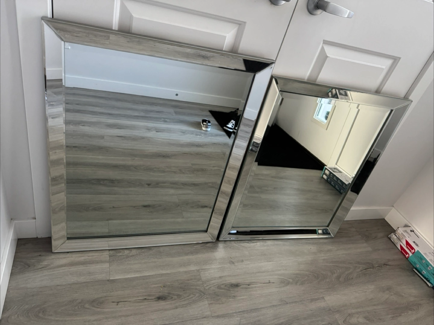 Selling two sets of two framed mirrors. They're in great shape and would look lovely in any room! Perfect for adding a touch of elegance to your home decor. The two sets are different sizes. The first set is slightly bigger than the second set. First set (bigger) is $90 and the second set is $80. You can one sets or both sets but not individually.