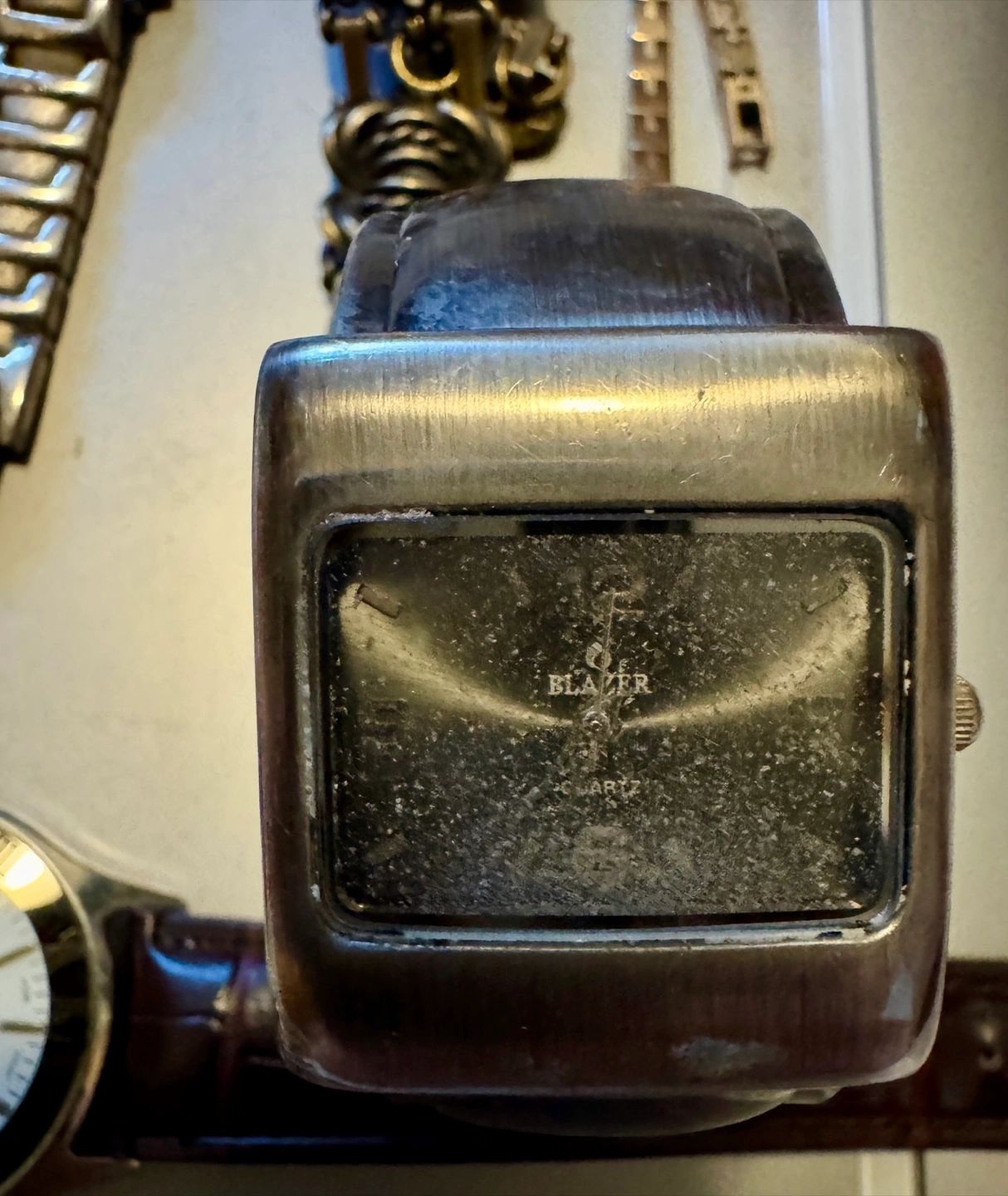 Selling a collection of vintage watches. Includes brands like Select, Blazer, Perma, and Indiglo. Great for collectors or anyone looking for a unique timepiece. Some wear and tear consistent with age