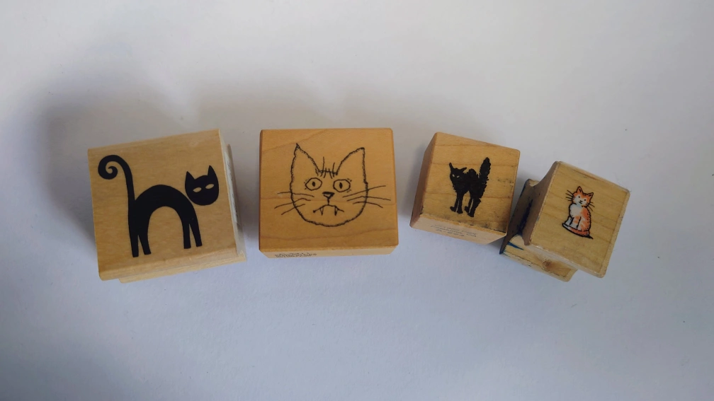 Selling as a set. Lot of 4 medium- to small Halloween cat-themed rubber stamps.