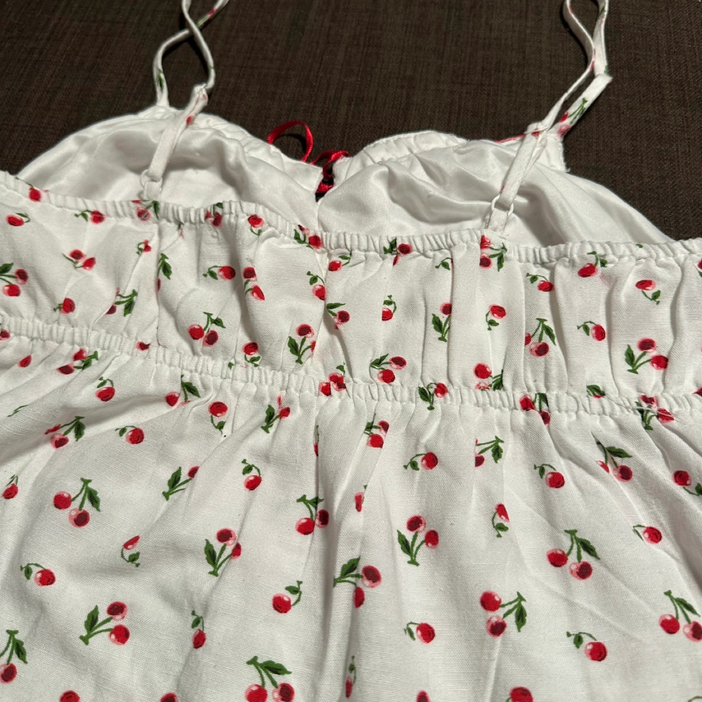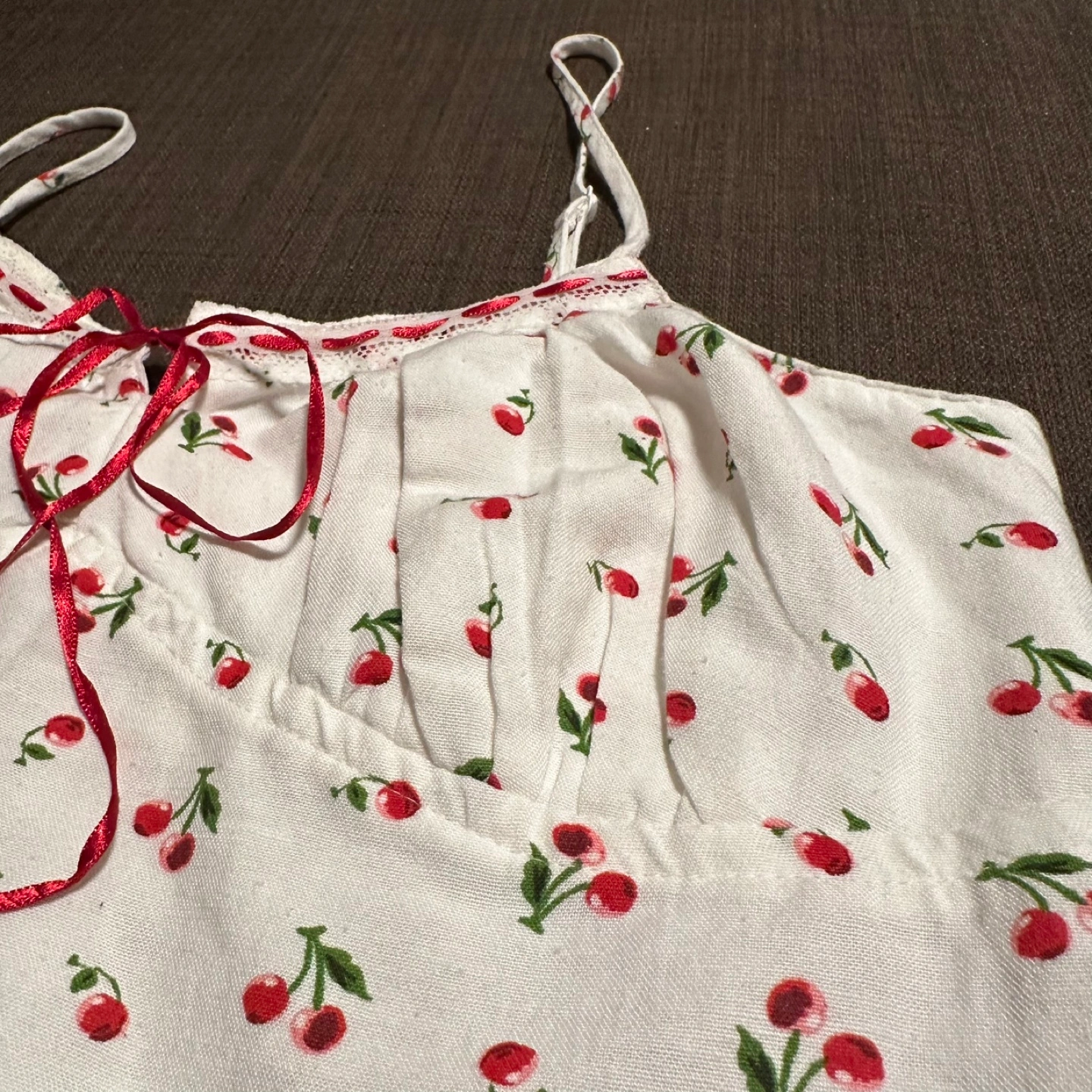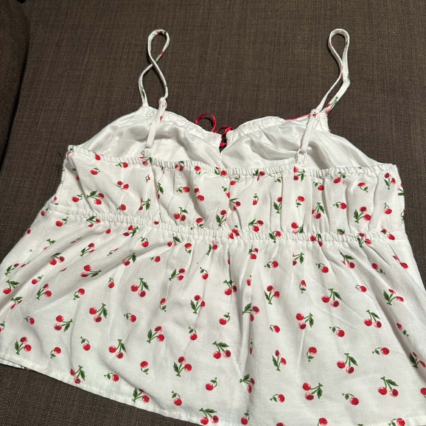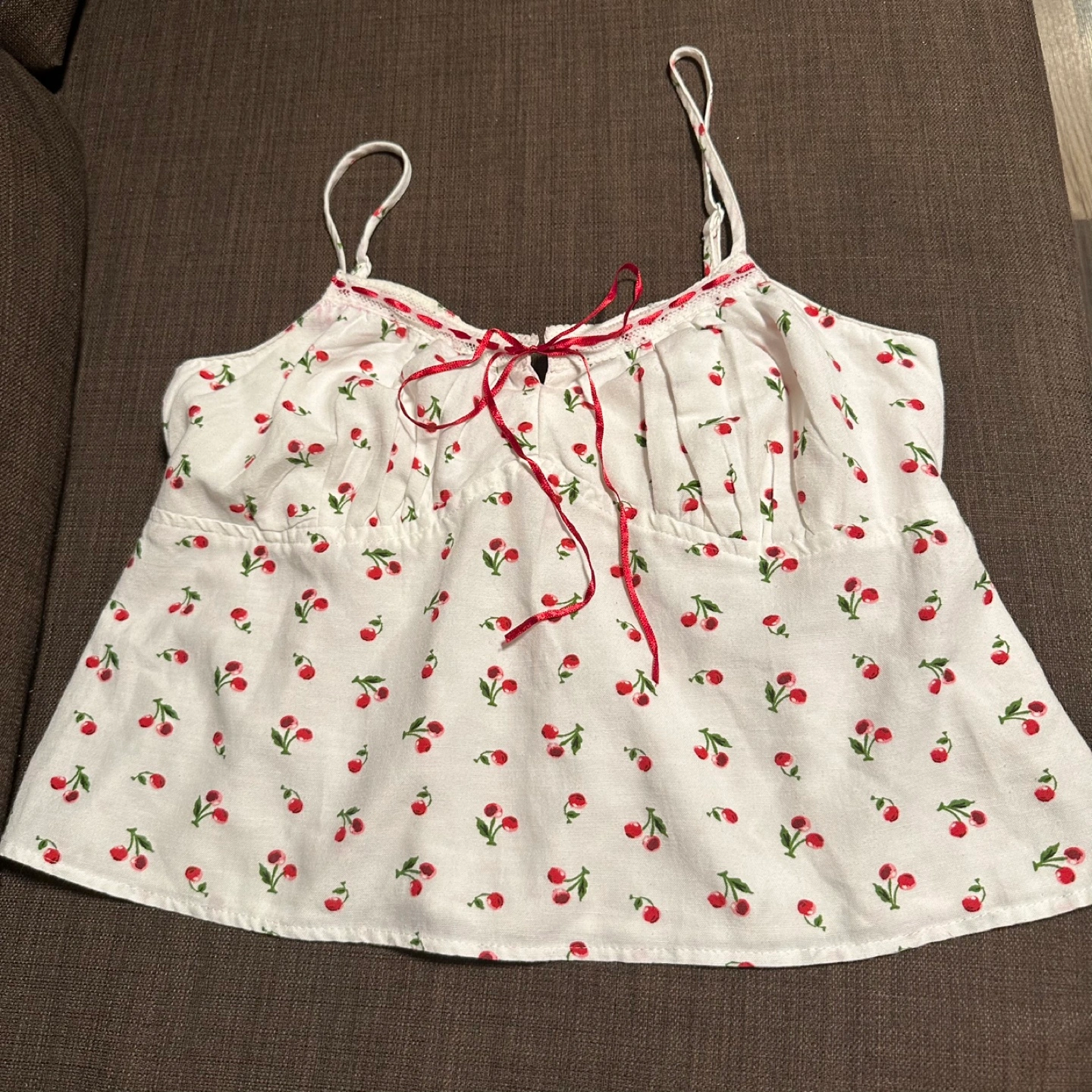 Buy & SellCherry Print Cami TopCherry Print Cami Top$10A cute cami top with a cherry print! It has a red ribbon detail at the front and adjustable straps. Perfect for summer days!WHERE TO MEETCheck LocationView MapSELLERRitaJunction Area768 reviews1 chats·2 favorites·21 views